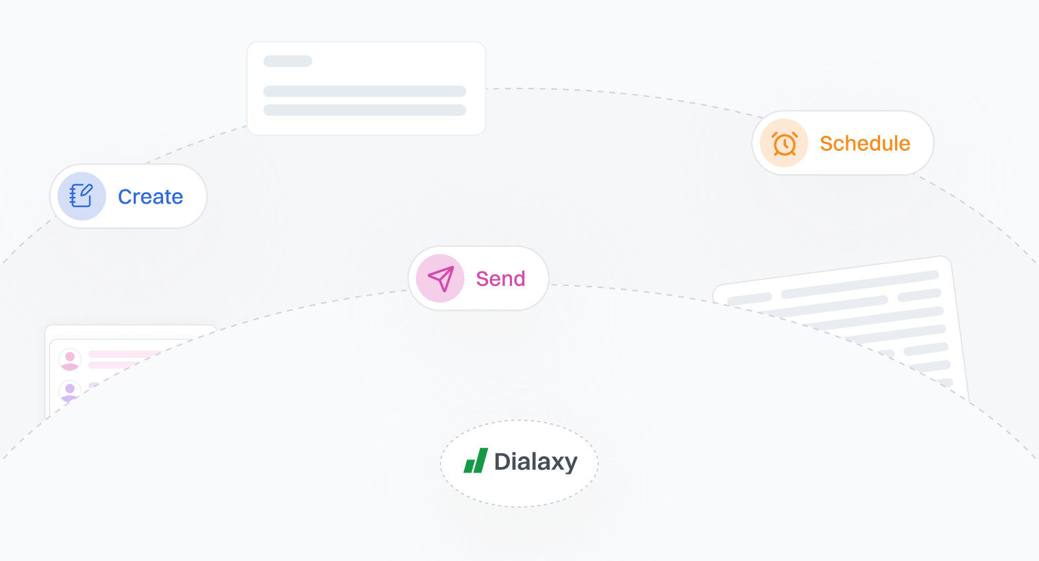 Optimize Your Communication with Scheduled SMS Improve your communication strategy with the Schedule SMS feature, as it allows you to plan and send messages at the most difficult times. Sign upRequest a Demo Endorsed by top industry leaders Trusted by industry experts for excellence and innovation. What is a Schedule SMS? A schedule SMS is a messaging feature that allows you to set text messages to be sent at a later time. The scheduled message is queued and delivered automatically. This feature is used to plan campaigns, appointment reminders, or support updates, no matter the time zone. Whether you’re working with the default message app or using a third-party app, the built-in system offers advanced control over scheduled messages and delivery. You can create a message now and have it sent later during optimal business hours. Schedule SMS feature is perfectly suited for business texts, mass texting, or any workflow that needs timely delivery. With message scheduling, you gain control over timing, increase reliability, and reduce the need for live intervention. How to Schedule an SMS with Dialaxy? Scheduling an SMS with Dialaxy is simple and effective, as it improves your communication strategy. Here’s how you can do it: Log in to your Dialaxy account. Go to the Message logs to manage your SMS. Select the “Schedule SMS” option to set future times and pick the date and time when you want to send the SMS. The message will be scheduled and delivered to the recipients at a set date and time. What is a Schedule SMS? A schedule SMS is a messaging feature that allows you to set text messages to be sent at a later time. The scheduled message is queued and delivered automatically. This feature is used to plan campaigns, appointment reminders, or support updates, no matter the time zone. Whether you’re working with the default message app or using a third-party app, the built-in system offers advanced control over scheduled messages and delivery. You can create a message now and have it sent later during optimal business hours. Schedule SMS feature is perfectly suited for business texts, mass texting, or any workflow that needs timely delivery. With message scheduling, you gain control over timing, increase reliability, and reduce the need for live intervention. How to Schedule an SMS with Dialaxy? Scheduling an SMS with Dialaxy is simple and effective, as it improves your communication strategy. Here’s how you can do it: Log in to your Dialaxy account. Go to the Message logs to manage your SMS. Select the “Schedule SMS” option to set future times and pick the date and time when you want to send the SMS. The message will be scheduled and delivered to the recipients at a set date and time. How does Schedule SMS work? 1 Message Creation Compose a text message on an Android app or any device linked to the messages app. You can include appointment reminders, verification codes, or any message to send. 2 Time Selection You can choose the date and time for the scheduled text that suits your delivery. It automatically aligns with your local time zone for accurate scheduling. 3 Queue Confirmation The message joins a queue, waiting for the scheduled time. The system quietly prepares for the scheduled send without interruptions. 4 Automatic Delivery At the set time, the system triggers and sends the message to the recipients. The sending scheduled process works without needing to manually tap send. 5 Status Tracking You get updates on delivery and read receipts, ensuring reliability. 6 Post-Send Management Scheduled messages can be modified or deleted before sending. Once sent, results are logged for reporting. Benefits of Scheduling SMS Boost Productivity Automates your SMS as it saves time and ensures timely delivery without manual interventions. Improve communication strategy Coordinate your messaging efforts by planning and scheduling SMS campaigns ahead of time. Increase Customer Engagement Reach your customers when they are most likely to respond and improve the effectiveness of your messages. Ensure Consistent Timing Send the SMS at the best times to your audience, regardless of their location or time zone. Minimize Human Error Schedule important messages and avoid forgetting to send them. This ensures consistency and reliability. Consistency in Communication During busy periods, maintain a steady flow of communication with your audience to ensure that your messages are sent consistently. Why use Dialaxy for schedule SMS? Dialaxy’s schedule SMS is made for scale and simplicity. Whether you’re planning bulk sms, sending reminders app alerts, or updating customers with automated text, our platform offers clarity and control. You can customize each message to customers. Choose the time and date, preview before sending, and coordinate with tools like the Google Calendar app for smooth message integration. Dialaxy offers a platform to create, queue, and track every scheduled SMS. It monitors which messages to be sent, who receives what, and when. With centralized logs and performance metrics, businesses can plan and adjust future campaigns. Why use Dialaxy for schedule SMS? Dialaxy’s schedule SMS is made for scale and simplicity. Whether you’re planning bulk sms, sending reminders app alerts, or updating customers with automated text, our platform offers clarity and control. You can customize each message to customers. Choose the time and date, preview before sending, and coordinate with tools like the Google Calendar app for smooth message integration. Dialaxy offers a platform to create, queue, and track every scheduled SMS. It monitors which messages to be sent, who receives what, and when. With centralized logs and performance metrics, businesses can plan and adjust future campaigns. All-in-One Scheduling Platform Dialaxy lets you create, schedule, and send messages without switching between tools. No third-party app needed. You can plan and select the timezone, manage multip