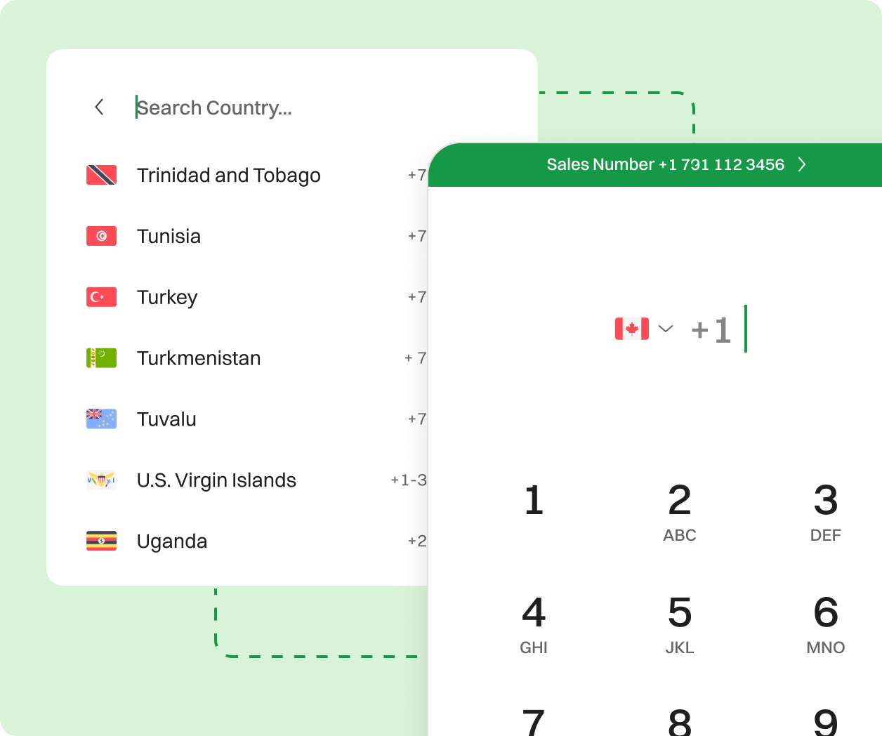• Choose your vanity number by selecting the country code (US/Canada) and entering the desired word or number sequence (e.g., 1-800-MY-BRAND).