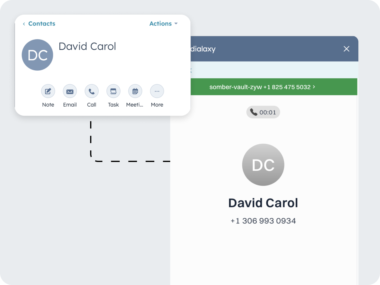 Boost Your Communication with Dialaxy x HubSpot Supercharge your workflow by connecting Dialaxy with HubSpot! Automate call logging, access real-time customer insights, and streamline interactions so you can focus on building stronger relationships and closing more deals effortlessly. Sign upRequest a Demo Endorsed by top industry leaders Trusted by industry experts for excellence and innovation. Powerful Features Tailored to Your Needs Boost efficiency with Dialaxy and HubSpot integration—automate tasks, enhance collaboration, and improve customer engagement. Automated Contact Syncing Keep customer data updated with real-time contact syncing between Dialaxy and HubSpot, eliminating manual entry. SMS Logging Effortlessly log SMS conversations in HubSpot, ensuring accurate records, better tracking, and seamless team collaboration for follow-ups. Click-to-Call Convenience Call directly from HubSpot with one click, saving time, reducing errors, and enabling instant customer connections. Powerful Features Tailored to Your Needs Boost efficiency with Dialaxy and HubSpot integration—automate tasks, enhance collaboration, and improve customer engagement. Automated Contact Syncing Keep customer data updated with real-time contact syncing between Dialaxy and HubSpot, eliminating manual entry. SMS Logging Effortlessly log SMS conversations in HubSpot, ensuring accurate records, better tracking, and seamless team collaboration for follow-ups. Click-to-Call Convenience Call directly from HubSpot with one click, saving time, reducing errors, and enabling instant customer connections. Enhance Dialaxy Cloud Phone System with HubSpot Integration Seamlessly connect Dialaxy with HubSpot to streamline communication, enhance productivity, and boost customer engagement. Automated Call Logging Eliminate manual data entry with automatic call logging in HubSpot. Every call is recorded with essential details, allowing your team to track conversations, follow up efficiently, and maintain a complete communication history. Real-Time Contact Syncing Keep your HubSpot contacts updated with real-time synchronization. Any changes made to customer details in one platform are instantly reflected in the other, ensuring accurate and consistent customer data across both systems. Call Pop-Ups with Contact Insights Receive instant caller ID pop-ups displaying key customer details from HubSpot. This allows your team to personalize interactions, access past communication history, and provide a seamless, customer-centric experience. Call Recording and Transcription Enhance training and compliance with call recordings and transcriptions stored in HubSpot. Easily review conversations, extract key insights, and ensure high-quality customer interactions while maintaining a comprehensive record. Automated Task and Follow-Up Creation Improve workflow efficiency with automatic task creation in HubSpot after every call. Assign follow-ups, schedule reminders, and keep track of customer interactions to ensure no opportunity is missed. Start Integrating HubSpot CRM with Dialaxy Today! Boost your team’s productivity by integrating Dialaxy with HubSpot CRM. Unify your calls, messages, and customer data in one centralized platform, making communication seamless and efficient. Request a DemoSign up Explore More Integrations Connect Dialaxy with your favorite tools to enhance productivity and smooth communication effortlessly. Pipedrive Sales Administration Copper Sales Administration ZohoCRM CRM Slack Communication View all Integration Step-by-Step Guide to Integrating HubSpot CRM with Dialaxy Connect Dialaxy with your favorite tools to enhance productivity and smooth communication effortlessly. Step 1 Start the Installation Navigate to the HubSpot App Marketplace and search for "Dialaxy." Alternatively, you can begin the process directly from the Dialaxy integration section. Step 2 Install the App Click on the "Install app" button in the HubSpot Marketplace. This action will redirect you to the Dialaxy workspace. Log in if necessary. Step 3 Connect Your Accounts In the Dialaxy interface, look for "Integrations" in the sidebar menu. Choose HubSpot from the list of available integrations. Click "Connect" to proceed with the HubSpot integration. Select the HubSpot account you wish to link. Step 4 Authorize the Connection Review the permissions requested by the integration and approve them to continue. Click "Connect app" to complete the installation process. Step 5 Customize Integration Settings After installation, you can adjust the integration settings to suit your needs. Click the three-dot menu and choose "Edit" to access the configuration options. Under "General Settings," you can enable or disable options like: Creating new contacts automatically Two-way contact synchronization Displaying phone numbers as contacts Under "Call Settings," you can enable or disable: Outgoing calls Incoming calls Voicemail syncing Link one or more of your Dialaxy phone numbers based on your preferences. Benefits of Integrating Dialaxy with HubSpot Streamlined Communication Automatically log calls, access customer details instantly, and keep all interactions in one place. This seamless integration reduces manual work, ensures accuracy, and enhances team collaboration for more efficient customer communication. Enhanced Customer Experience Provide personalized service with instant access to customer history and insights from HubSpot. Agents can tailor interactions, anticipate needs, and resolve issues faster, creating a more engaging and satisfying customer experience. Improved Sales Productivity Save time with click-to-call, automated follow-ups, and intelligent call routing. Sales teams can focus on closing deals instead of managing data, leading to higher conversion rates and a more efficient sales process. Better Data Accuracy Eliminate duplicate entries and outdated information with real-time contact syncing. Customer data stays consistent across Diala
