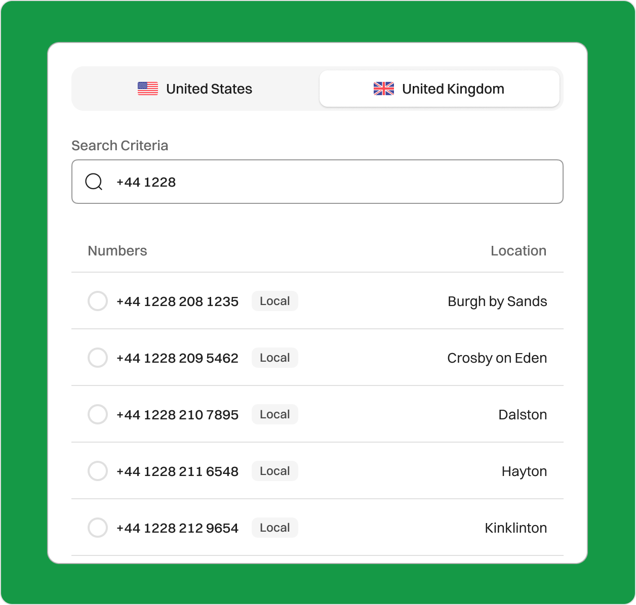 Expand Your Business with a 01228 Area Code Virtual Number in Carlisle, UK Obtain a 01228 area code virtual number for your business in Carlisle, Cumbria. Enhance your local image, foster customer confidence, and maintain reliable communication with a trusted virtual phone number. Sign upRequest a Demo Endorsed by top industry leaders Trusted by industry experts for excellence and innovation. What is the 01228 Area Code? The 01228 area code is a UK geographic dialing code that covers the city of Carlisle and surrounding areas in Cumbria, England. As part of the United Kingdom’s national numbering plan, it connects homes and businesses across Carlisle, Dalston, Longtown, Wetheral, Rockcliffe, and Nicholforest, as well as other nearby communities, supporting a vibrant local economy and community. Unlike North American overlay systems, 01228 is not currently overlaid by another area code. Carlisle operates within the Greenwich Mean Time (GMT) zone and observes British Summer Time (BST) during daylight saving periods. Country United Kingdom Region Cumbria City Carlisle Time Zone GMT /BST Telephone Format +44 1228 XXX XXX Example +44 1228 555 588 Where is the 01228 Area Code? The 01228 area code is located in the United Kingdom and serves Carlisle and the surrounding region in Cumbria, England. Carlisle is a cathedral city located near the Scottish border, rich in Roman history and renowned for its landmarks, including Carlisle Castle and Hadrian’s Wall. The 01228 dialing code covers Carlisle as well as towns and villages such as Dalston, Haytown, Longtown, Wetheral, Rockcliffe, and Nicholforest. This is a geographic area code, meaning it is specifically tied to this region and helps distinguish local landline numbers. Calls made to 1228 numbers from outside the UK must include the country code (+44), followed by 1228 and the local subscriber number. The 01228 code is a trusted identifier for the Cumbria region and is recognized by both local residents and businesses. Unlike in North America, UK area codes are not typically overlaid, so 01228 remains the sole code for the Carlisle area. This makes it a familiar and reliable number for local communications. A Brief History of the 01228 Area Code The 1228 area code was introduced as part of the UK’s move to standardize and expand its telephone numbering system. Prior to the introduction of the current code, Carlisle used the shorter 02828 area code. The change to 01228 (commonly written as 1228 in international format) was implemented during the UK’s “PhONEday” renumbering on 16 April 1995. This nationwide initiative added a ‘1’ after the initial ‘0’ in area codes to expand number capacity and future-proof the system against growing demand. The transition to 1228 allowed for a much larger pool of numbers to support Carlisle’s expanding population, increased business activity, and the rise of digital communications. The change was carefully managed with public campaigns to ensure awareness and minimize disruption. Today, 1228 continues to serve as the exclusive code for Carlisle and its surrounding areas, supporting the region’s identity as a historic and economic hub in northwest England. How to Get a 01228 Area Code Phone Number? You can purchase a 01228 area code phone number from a VoIP service provider like Dialaxy. Follow these simple steps: Sign up on the official Dialaxy website or mobile app. Log in to your Dialaxy account. Search “My Number” from the “Portal” menu. Click on “Buy Number.” Choose the United Kingdom as your country and search for the 01228 area code. Complete the payment and submit any required documentation. How Does a 01228 Area Code Business Phone Number Work? A 01228 area code business phone number provides your company with a dedicated line that connects you to customers in Carlisle and nearby areas in Cumbria. It uses VoIP (Voice over Internet Protocol) technology, allowing you to make and receive calls over the internet instead of through traditional landlines. This flexibility means your business can operate its 01228 number from any internet-enabled device—whether it’s a laptop, smartphone, or desktop computer. Whether you’re based in Carlisle or operating remotely, a 01228 number gives your business a strong local presence. A 01228 business number includes features such as call forwarding, voicemail-to-email, call filters, automated menus, call recording, call analytics, and SMS tools designed to enhance communication and customer service. With a 01228 number, your business appears more established to local clients, making them more likely to trust and engage with you. Dialing a 01228 Number Country Code (+44): Indicates the United Kingdom Area Code (01228): Routes the call to Carlisle Subscriber Number (e.g., 555 678): Unique to each phone line or business A 01228 number provides your business with a professional connection to Carlisle, supported by modern telephony tools. Who’s Doing Business in the 01228 Area Code? The 01228 area code is a central telecom hub for Carlisle’s broad economy. Key industries and organizations include: Public Sector & Government Carlisle hosts regional offices and government services, including local council departments and emergency services. These entities use 01228 numbers for public engagement and coordination. Logistics & Distribution As a key transport link between England and Scotland, Carlisle supports warehousing and freight businesses that use 01228 lines for dispatch, tracking, and customer communication. Retail & Tourism Carlisle’s historic attractions and vibrant shopping areas attract tourists and shoppers alike. Local shops, hotels, and restaurants use 01228 numbers for reservations and inquiries. Education & Healthcare Institutions like the University of Cumbria and local NHS Trusts use 01228 phone numbers to provide essential education and healthcare services across the region. Agriculture & Food Production Surrounded