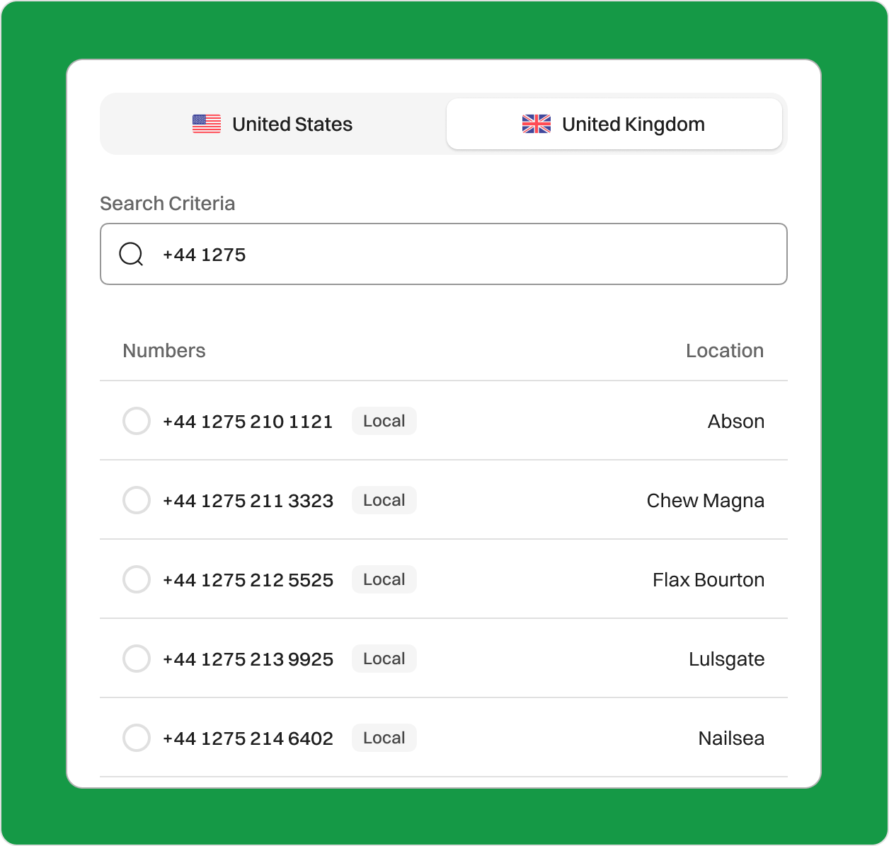 Get a 01275 Area Code Local Virtual Number for Clevedon, UK Looking to connect with customers in Clevedon, North Somerset? A 01275 area code number helps your business feel local, trusted, and just around the corner—even if you’re not. It’s an easy way to build stronger relationships and keep communication smooth and professional. Sign upRequest a Demo Endorsed by top industry leaders Trusted by industry experts for excellence and innovation. What is the 01275 Area Code? The 01275 area code is a UK telephone code that connects you to Clevedon in North Somerset. If you’ve ever received a call from this number starting with 01275, it probably came from someone in this part of southwest England, not far from Bristol. This area code is part of the UK’s national numbering system and is assigned specifically to landline phones in the region. Whether it’s a small business, a local resident, or a coastal guest house calling, a 01275 number signals a North Somerset connection. There’s only one area code for this region, and it follows UK time—Greenwich Mean Time (GMT) in winter and British Summer Time (BST) in summer. Country United Kingdom Region North Somerset City Clevedon Time Zone GMT / BST Telephone Number Format +44 1275 XXX XXX Example of 01275 Number +44 1275 555 123 Where is the 01275 Area Code? The 01275 area code is based in the United Kingdom and covers Clevedon and surrounding towns in North Somerset, just southwest of Bristol. This scenic coastal region is known for its charming Victorian architecture, peaceful seaside views, and vibrant local community. If you’re calling a landline number in Clevedon, you’re dialing into the 01275 area. It’s a geographic code, meaning it’s tied to a specific part of the country, unlike mobile numbers that can move with you. For international callers, add the UK’s country code (+44), drop the first 0, and you’ll be connected to someone in the heart of North Somerset. A Brief History of the 01275 Area Code Like many UK area codes, 01275 has its roots in a nationwide update to the phone system designed to keep up with the times. The government launched a major renumbering initiative called “PhONEday” on April 16, 1995. As part of the change, Clevedon’s old area code 0275 was updated to 01275, with a ‘1’ added after the initial ‘0’. 01275 has stayed the trusted and familiar area code for Clevedon and nearby towns like Portishead and Nailsea. Today, 01275 continues to serve as a vital part of the local identity. Whether you’re calling a small business on the High Street or catching up with the family by the sea, it is a number that says “you’re local” and always connected. How to Get a 01275 Area Code Phone Number? You can purchase a 01275 area code phone number from a VoIP service provider like Dialaxy. Follow these simple steps: Sign up on the official Dialaxy website or mobile app. Log in to your Dialaxy account. Search “My Number” from the “Portal” menu. Click on “Buy Number.” Choose the United Kingdom as your country and search for the 01275 area code. Complete the payment and submit any required documentation. How Does a 01275 Area Code Business Phone Number Work? A 01275 business phone number gives your company a local presence in Clevedon and surrounding towns—even if you’re not physically based there. It works using VoIP (Voice over Internet Protocol) technology, which means your calls go over the internet instead of traditional phone lines. You can make and receive calls from your 01275 number using your smartphone, laptop, or desktop—wherever you are. Whether you’re working remotely, managing a team, or running a local shop, this number helps you stay connected with customers in the area. But there’s more to it than just picking up the phone. With a 01275 number, you also get features like call forwarding, voicemail that lands right in your email, automated greetings, call recording, and even text messaging. These extras help you stay on top of things, respond quickly, and keep your business running smoothly. Dialing a 01275 Number Country Code (+44): Indicates the United Kingdom Area Code (01275): Routes the call to Clevedon Subscriber Number (e.g., 555 123): Unique to each phone line or business A 01275 number helps your business feel local and trustworthy to customers in Clevedon, while still giving you the flexibility of modern, internet-powered phone systems. Who’s Doing Business in the 01275 Area Code? The 01275 area code covers a region with a diverse economy. Here are key sectors and businesses active in the area: Health & Wellness Located on Kenn Road, Clevedon Dental Clinic provides comprehensive dental care with a focus on patient comfort and satisfaction. The clinic uses its 01275 number to stay connected with families booking regular checkups or emergency visits. Real Estate Reeds Rains offers property sales, lettings, and management services in Clevedon and the surrounding areas. Their 001275 line makes it easy for house hunters and landlords to reach out for trusted, local advice. Financial Services With over 100 years of experience, Wards Solicitors provides legal services including family law, conveyancing, and wills. Locals often dial their 001275 number for everything from drafting wills to resolving legal disputes. Education Clevedon School is a secondary academy catering to students aged 11–18. Parents and students regularly call their 001275 number for term updates, school events, and academic support. Trade & Home Services Able Group provides 24/7 emergency drainage services in Clevedon, including unblocking, repairs, and CCTV surveys. Their 001275 phone line is a lifeline for residents needing urgent help at any hour Tourism Walton Park Hotel is overlooking the Bristol Channel. This historic hotel uses a 01275 number for bookings, weddings, and guest services. Why Does Your Business Need a 01275 Area Code Number? Local Business Stay Connected 