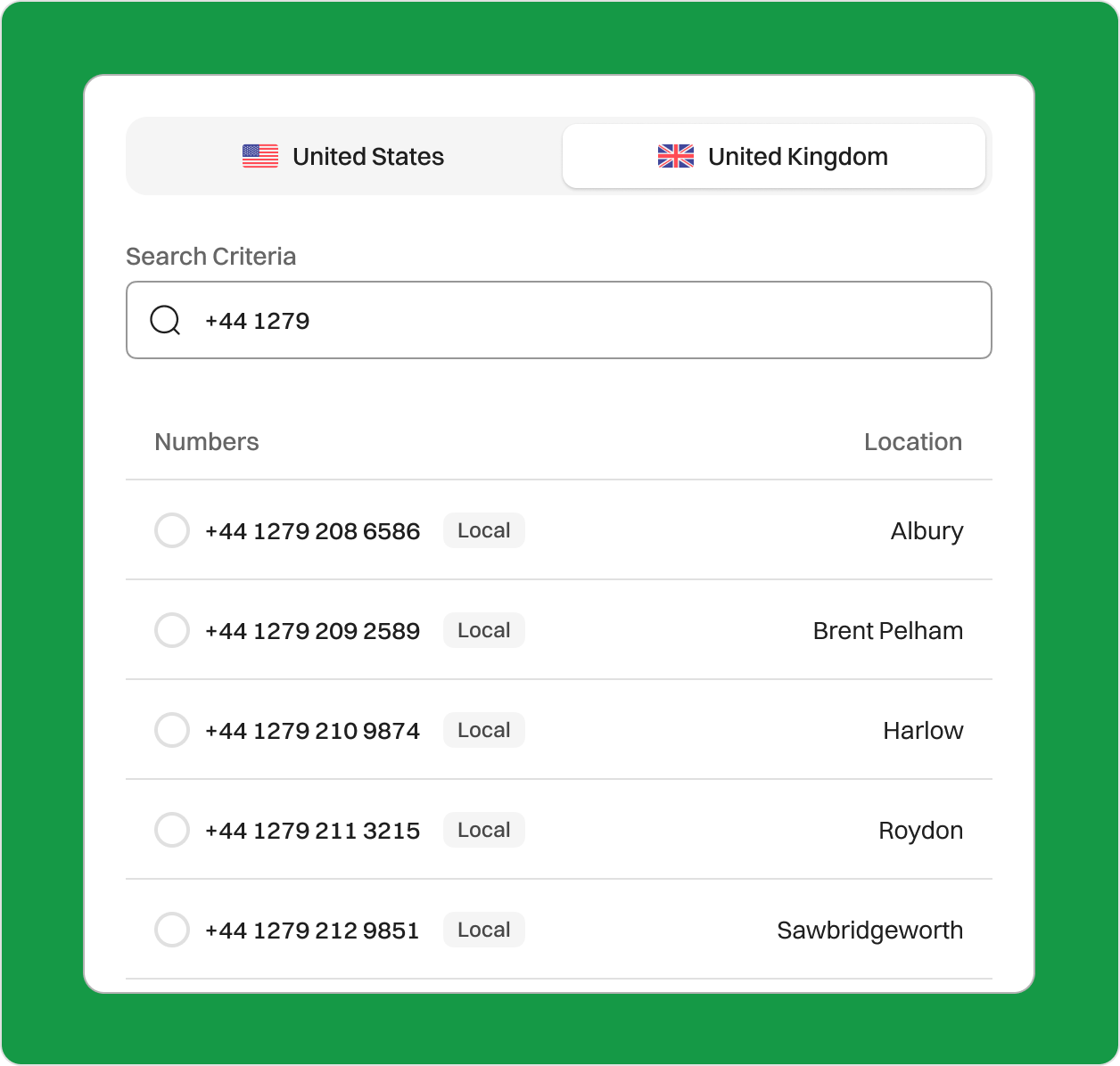 Get a 01279 Area Code Local Virtual Number for Bioshp's Stortford, UK Looking to connect with customers in Bishop’s Stortford? A 01279 area code number helps your business feel local, no matter where you are based. It is a simple way to build trust, stay connected, and show your commitment to the community. Sign upRequest a Demo Endorsed by top industry leaders Trusted by industry experts for excellence and innovation. What is the 01279 Area Code? The 01279 area code is a UK geographic dialing code that covers the town of Bishop’s Stortford. As part of the United Kingdom’s national numbering plan, this code connects residents and businesses across a busy commuter corridor near countryside charm with urban convenience. The 01279 code helps people and businesses in the area stay connected, whether it’s a local shop taking calls from nearby customers or a growing business managing regional communications. Unlike some places that use overlapping codes, 01279 stands alone, making it easy to recognize and remember. This area runs on Greenwich Mean Time (GMT) and switches to British Summer Time (BST) when the clocks go forward, keeping everything in sync with the rest of the UK. Country United Kingdom Region Hertfordshire City Bishop’s Stortford Time Zone GMT /BST Telephone Number Format +44 1279 XXX XXX Example of 01279 Number +44 1279 555 678 Where is the 01279 Area Code? The 01279 area code is located in the United Kingdom and primarily serves the town of Bishop’s Stortford in Hertfordshire. Bishop’s Stortford itself lies in a prime spot between London and Cambridge, making it a popular home base for commuters and a thriving place for small businesses. It is the kind of place where families put down roots, small businesses grow, and community life thrives. This area is known for its mix of charming neighborhoods, modern infrastructure, and a growing commercial presence. The 01279 code plays an important role in helping residents and businesses in Bishop’s Stortford and surrounding areas stay connected. The 01279 is a geographic area code, which means it is region-specific and helps distinguish landline numbers based in this locality. If you’re calling from outside the UK, you’ll need to dial +44, followed by 01279 and the local number. A Brief History of the 01279 Area Code On April 16, 1995, a national renumbering event known as “PhONEday” took place. It was a big moment; every geographic area code across the country added a ‘1’ after the initial zero, making room for millions of new phone numbers. For Bishop’s Stortford and the surrounding region, that meant saying goodbye to 0279 and hello to the now-familiar 01279. The change may have seemed small, but it had a big impact. With growing communities, more mobile devices, and an expanding business landscape, the update was essential. Thanks to PhONEday, 01279 became a long-term solution that continues to serve as a reliable and recognizable code for this part of southeast England. How to Get a 01279 Area Code Phone Number? You can purchase a 01279 area code phone number from a VoIP service provider like Dialaxy. Follow these simple steps: Sign up on the official Dialaxy website or mobile app. Log in to your Dialaxy account. Search “My Number” from the “Portal” menu. Click on “Buy Number.” Choose the United Kingdom as your country and search for the 01279 area code. Complete the payment and submit any required documentation. How Does a 01279 Area Code Business Phone Number Work? A 01279 area code business phone number provides your company with a dedicated phone line that connects you to customers in Bishop’s Stortford. It uses VoIP technology, allowing calls over the internet instead of traditional phone lines. You can use your number from any device, such as a smartphone, laptop, or desktop, whether you’re based in the region or operating remotely. A 01279 number offers your business a local identity, regardless of your physical location. Features of 01279 virtual numbers include call forwarding, voicemail-to-email, auto-attendants, call recording, and SMS functionality. These tools support excellent customer service and enhance operational efficiency. Choosing a 01279 number boosts your business’s credibility in this strategic region, encouraging trust and engagement from local clients. Dialing a 01279 Number Country Code (+44): Indicates the United Kingdom Area Code (01279): Routes the call to Bishop’s Stortford Subscriber Number (e.g., 555 678): Unique to each phone line or business line Who’s Doing Business in the 01279 Area Code? The 01279 area code supports a diverse and growing business community. Here are some of the industries and businesses that are making a significant impact in the area. Legal & Financial Services A trusted name in legal, financial, and wealth management services, Tees Law has an office in Bishop’s Stortford. With deep roots in the region, their 01279 number is a lifeline for clients who value trusted advice from people who understand the local landscape. Healthcare Hertfordshire and Essex Hospital, located on Haymeads Lane in Bishop's Stortford, this NHS facility offers outpatient services, minor injury care, physiotherapy, and community healthcare services. It is a vital part of the local healthcare network and well-known among residents. Digital & tech Startups Startups in Bishop’s Stortford are finding their stride in local hubs like Launchpad Workspaces. A 01279 number helps them feel rooted and trusted in the community. Education Bishop’s Stortford College plays a vital role in the local community. It is a mix of tradition and forward-thinking education. Whether you're calling to ask about admissions or get updates on school events, their 01279 line is often the first step toward joining something special. Retail & Hospitality Bishop’s Stortford’s dining and retail scene, highlighted by spots like Skew Restaurant & Oyster Bar, thrives on local 