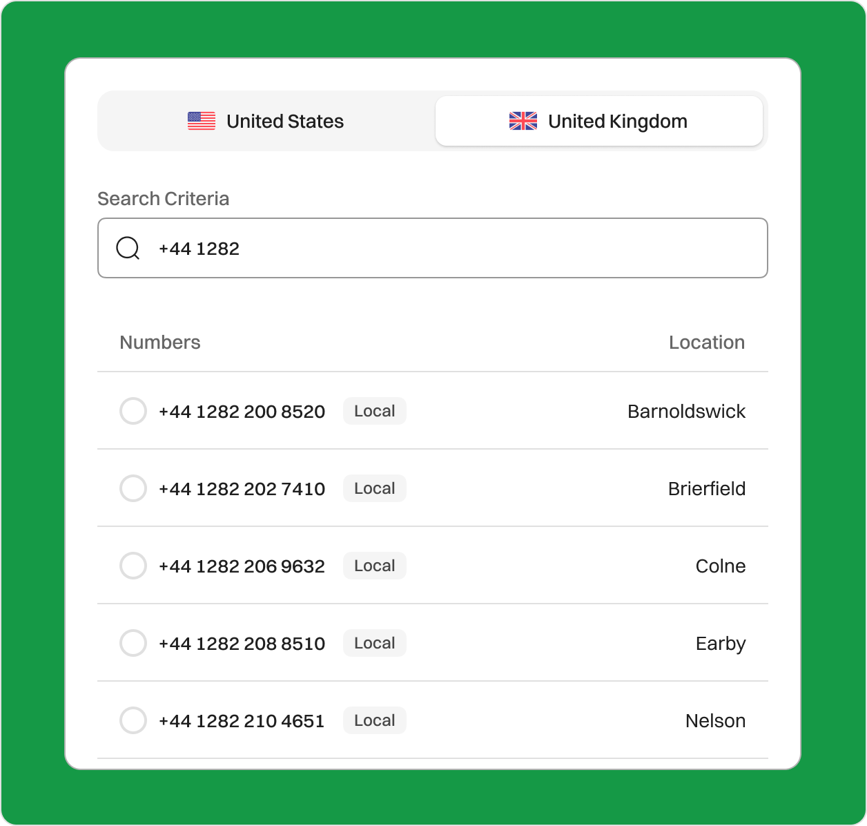01282 Area Code – Get a Local Phone Number for Burnley Get a 01282 area code virtual number for your business in Burnley, Lancashire. Strengthen your local presence, build customer trust, and ensure seamless communication with a dependable virtual phone number. Sign upRequest a Demo Endorsed by top industry leaders Trusted by industry experts for excellence and innovation. What is the 01282 Area Code? The 01282 area code is a UK geographic dialing code that covers the town of Burnley in Lancashire. As part of the United Kingdom’s national numbering plan, it connects homes and businesses across Burnley and nearby cities, including Nelson, Brierfield, and parts of Colne. Unlike North American overlay systems, 01282 is not currently overlaid by another area code. Burnley operates within the Greenwich Mean Time (GMT) zone and observes British Summer Time (BST) during daylight saving periods. Country United Kingdom Region Lancashire City Burnley Time Zone GMT / BST Telephone Number Format +44 1282 XXX XXX Example of 01282 Number +44 1282 555 678 Where is the 01282 Area Code? The 01282 area code is located in the United Kingdom and primarily serves the town of Burnley in Lancashire. It also includes nearby communities such as Nelson, Brierfield, and parts of Colne. Burnley is a historic market town known for its industrial heritage and scenic surroundings near the Pennines. 01282 is a geographic area code, which means it is tied to this specific region and helps identify local landline numbers. Calls to 01282 numbers from outside the UK must include the country code (+44), followed by 1282 and the local number. This dialing code remains exclusive to the Burnley area and has not been overlaid, making it a recognizable and trusted code for local residents and businesses. A Brief History of the 01282 Area Code The 01282 area code was introduced on 16 April 1995, as part of the UK’s PhONEday initiative. This system-wide change added a ‘1’ after the initial ‘0’ in area codes to increase capacity for growing telecom demands. Before PhONEday, Burnley used the 0282 area code. The shift to 01282 expanded the number pool to support rising demand from residential lines, mobile phones, and internet-based services. PhONEday was part of a strategic modernization effort by UK telecom authorities to prepare for digital transformation. Today, 01282 remains the dedicated code for Burnley and surrounding towns, helping maintain a strong regional identity and connection. How to Get a 01282 Area Code Phone Number? You can purchase a 01282 area code phone number from a VoIP service provider, such as Dialaxy. Follow these simple steps: Sign up on the official Dialaxy website or mobile app. Log in to your Dialaxy account. Search “My Number” from the “Portal” menu. Click on “Buy Number.” Choose the United Kingdom as your country and search for the 01282 area code. Complete the payment and submit any required documentation. How Does a 01282 Area Code Business Phone Number Work? A 01282 area code business phone number provides your company with a dedicated line to reach customers in Burnley and nearby Lancashire towns. It utilizes VoIP (Voice over Internet Protocol) technology, allowing you to make and receive calls over the internet, rather than through a physical landline. This flexibility lets you use the number from any device—mobile, tablet, or desktop—no matter where you are. Even if your company isn’t physically based in Burnley, a 01282 number gives it a credible, local identity. These numbers come with advanced communication features like voicemail-to-email, call routing, auto-attendants, and SMS messaging. It’s a scalable, reliable solution for businesses that want to stay connected and appear local to customers. Dialing a 01282 Number Country Code (+44): Indicates the United Kingdom Area Code (01282): Routes the call to Burnley Subscriber Number (e.g., 555 678): Unique to each phone line or business A 01282 number gives your brand a trusted presence in Lancashire while providing flexible and affordable communication options. Who’s Doing Business in the 01282 Area Code? The 01282 area code supports a diverse local economy in Burnley and nearby towns. Here are the industries thriving in this area: Advanced Manufacturing Burnley is home to aerospace and precision engineering firms. Businesses like Safran Nacelles use 01282 lines to support global production and customer service. Education & Training Burnley College and University Courses Burnley serves local learners. These institutions use 01282 numbers for academic and administrative outreach. Retail & Services From local shops to national retailers at Charter Walk Shopping Centre, Burnley’s retail sector relies on 01282 numbers to manage orders and customer inquiries. Logistics & Distribution With access to the M65 corridor, logistics companies thrive in the region. 01282 numbers help them coordinate deliveries and operations. Healthcare & Community Services The East Lancashire Hospitals NHS Trust and local practices use 01282 numbers to support patient access and medical coordination. Small Business & Startups Local entrepreneurs and family-owned businesses utilize 01282 numbers to serve their community while fostering regional loyalty. Why Does Your Business Need a 01282 Area Code Number? Establish Local Trust with a 01282 Number A Burnley-based phone number demonstrates your commitment to the local community, which can lead to increased customer engagement and more incoming calls. This local presence helps strengthen connections with potential clients and fosters a sense of trust. Gain Credibility Through Familiarity The number 01282 has a significant reputation in Lancashire. Research indicates that customers tend to be more responsive to and place greater trust in phone numbers that have local relevance. Support Regional Branding A strong local presence in the Burnley area significantly enhances your business operati