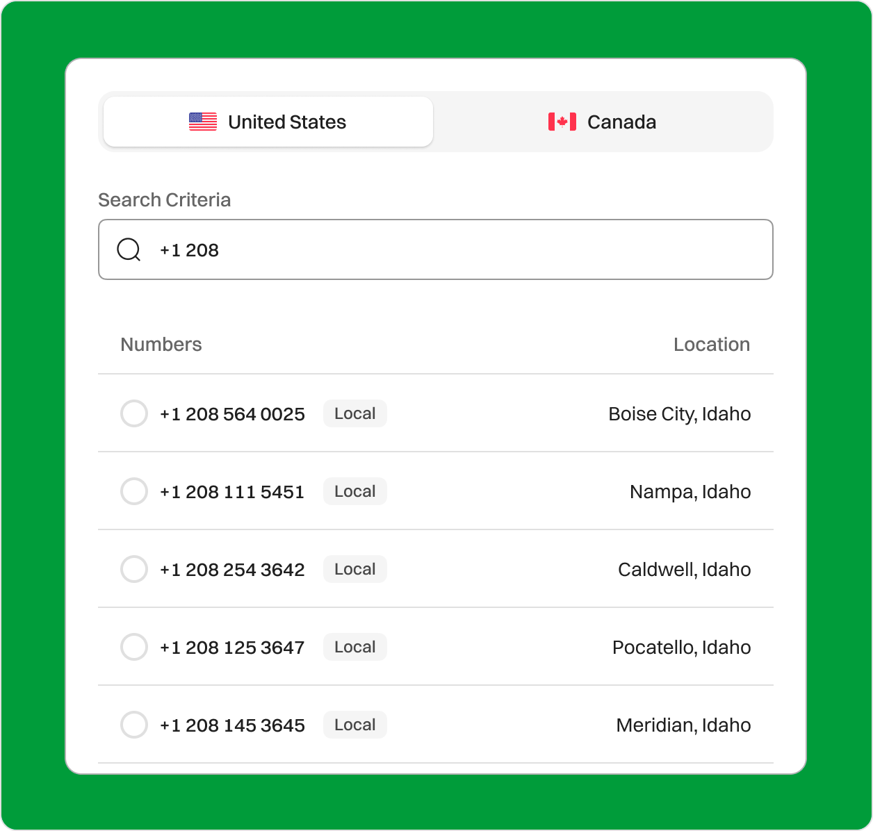 Get your 208 Area Code Virtual Phone Number in Idaho today! Are you trying to expand your business presence in Idaho? A virtual phone number with the 208 area code can help you connect with local customers easily. Don’t worry—Dialaxy is here to guide you through the entire process! Sign upRequest a Demo Endorsed by top industry leaders Trusted by industry experts for excellence and innovation. What is the 208 area code? The 208 area code is located in Idaho and serves forty-four counties, including Kootenai, Boise, Jefferson, Bonneville, Ada, and Canyon. Major cities like Boise City, Nampa, Lewiston, Idaho Falls, Pocatello, Meridian, and Caldwell are covered by this area code. It was one of the original 86 area codes created in 1947 by the American Telephone and Telegraph Company. In 2016, a new area code (986) was established to overlay 208 due to the increasing population. The total population using the 208 area code is 1,990,456. The 208 area code follows the Mountain and Pacific time zones. In the Mountain time zone, the standard time UTC is -7 and -6 during daylight saving time. In the Pacific time zone, the standard time UTC is -8 and -7 during daylight saving time. Some nearby area codes to 208 are 236/672/778 (Vancouver, BC), 250 (Kelowna, BC), 307 (Wyoming), 368/587/825 (Calgary, AB), 406 (Montana), 458/541 (Eugene, OR), 509 (Spokane, WA), 435 (St. George, UT), 403 (Calgary, AB), and 775 (Reno, NV). Country USA State Idaho Major City Boise City, Nampa, and Caldwell Time Zone Pacific time zone (UTC -8 ) and Mountain time zone (UTC-7) Telephone Number Format +1 (208) XXX-XXXX 208 Area Code Phone Number Example +1-208-457-0099 How to get the 208 area code phone number? You can buy an 208 area code phone number from a VoIP service provider. Dialaxy is a reputable service provider to get area code 208. Follow the given steps to get one: Sign up via the official website or mobile app. Login with the correct credentials to access the dashboard. Click the “My Number” option under the “Portal” menu. Select the “Buy Number” option. Choose “US” as the country and select the desired 208 area code from the list. How does a 208 business phone number work? The 208 business phone number operates in the same manner as any other standard phone number in the United States, and it is acquired through the NANP (North American Numbering Plan). When placing a call, the caller needs to dial a 10-digit number, which includes the area code. For instance, to contact the number 457-0099 in Idaho, dial +1-208-457-0099, where “1” is the country code for the USA, “208” is the area code, “457” is an exchange code that directs to a specific carrier, and “0099” represents the individual or company subscriber number. With every Dialaxy plan, you will receive a local phone number with a 208 area code. This phone number is equipped with advanced features such as IVR, text messages (SMS), call forwarding, number sharing, and more. Who’s doing business in area code 208? The 208 area code covers the entire state of Idaho, including key cities such as Boise, Meridian, and Idaho Falls. Dialaxy empowers businesses in this expansive region by offering effective communication solutions tailored for local and international reach. Whether you’re running a small enterprise or a large corporation, the 208 area code connects you to Idaho’s vibrant and growing business communities. The 208 area code is home to a wide variety of businesses, from tech startups to well-established companies. Some prominent industries in this area include: Agriculture Idaho is renowned for its agricultural industry, including potato farming and dairy production. Technology The tech sector is growing rapidly, with companies like Micron Technology and HP Inc. having a strong presence. Healthcare St. Luke's Health System and Saint Alphonsus Health System serve the region's healthcare needs. Retail Major retail brands, including Walmart and Costco, have a significant footprint across Idaho. Tourism Idaho’s natural beauty attracts outdoor enthusiasts to ski resorts, parks, and hiking trails. With a population of approximately 1.8 million people as of 2020 and an average household income of about $60,999 (according to the United States Census Bureau 2022 report), the 208 area code offers vast opportunities for businesses. Expand your business presence in Idaho or establish a local connection using 208 area code phone numbers available through Dialaxy, helping your enterprise grow effectively in this dynamic region. Benefits of having a Dialaxy’s 208 area code phone number Local Presence in Idaho With a 208 area code, your business can establish a strong local presence across Idaho, appealing to customers in Boise, Twin Falls, and Coeur d'Alene. Increased Trust Using a Dialaxy 208 phone number fosters trust and credibility, as customers tend to prefer doing business with local companies. Cost-Efficient Communication Dialaxy's VoIP services offer cost-effective solutions for making and receiving calls in the 208 area, cutting down on long-distance call expenses. Enhanced Mobility With Dialaxy's cloud-based system, you can take your 208 number anywhere, allowing you to run your business on the go without being tied to a physical location. Scalability for Growing Businesses Easily scale your business by adding multiple 208 phone numbers to different departments or employees, ensuring your business grows with your communication needs. Easy Setup and Management Setting up a 208 phone number with Dialaxy is quick and straightforward, with an easy-to-use interface for managing calls, settings, and phone features. Enjoy 100+ Dialaxy’s features with local phone number Call, SMS, & Contact in one easy to use app. Phone Numbers Global Calling SMS Voicemail Number Sharing Contacts All Features Phone Numbers Expand your reach with Virtual Phone Numbers International Numbers: Establish a local presence of your business wit