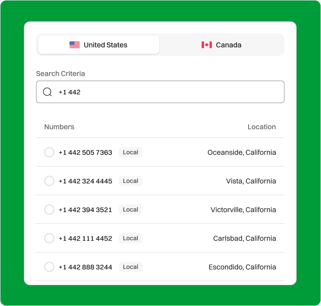 Grow Your Business with a 442 Area Code Phone Number in California Establish a local presence in Southern California with a 442 area code phone number from Dialaxy. Whether your business operates in Oceanside, Victorville, or the surrounding desert regions, a 442 number enhances your connection with local customers, building trust and credibility in the area. Sign upRequest a Demo Endorsed by top industry leaders Trusted by industry experts for excellence and innovation. What is area code 442? Area Code 442 is basically located in southeastern California and Covers Oceanside, Vista, Victorville, Carlsbad, and Escondido. It includes counties such as San Bernardino, San Diego, Riverside, Kern, Imperial, Tulare, Inyo, and Mono. It is an overlay for the 760 area code. The 442 area code falls in the Pacific time zone: UTC/GMT -8 hrs during standard time and UTC/GMT -7 during daylight saving time. The nearby area codes of 442 area code are 209/350 (Stockton, CA), 213/323 (Los Angeles, CA), 310/424 (Los Angeles, CA), 442/760 (Oceanside, CA), 530 (Redding, CA), 559 (Fresno, CA), 562 (Long Beach, CA), 619/858 (San Diego, CA), 626 (Pasadena, CA), 657/714 (Anaheim, CA), 661 (Bakersfield, CA), 702/725 (Las Vegas, NV). Country USA State California Major City Oceanside Time Zone Pacific time zone: UTC/GMT -8 hrs Telephone Number Format +1 (442)-XXX-XXXX Example of 442 phone number +1 (442)-204-4321 Zip Code 92009 – 91803 How to get a 442 Area Code Phone Number? You can purchase a 442 area code phone number from a VoIP service provider like Dialaxy. You can follow these steps. Sign up on the official Dialaxy website or mobile app. Log in to your account and navigate to the dashboard. Select “My Number” from the “Portal” menu. Click on “Buy Number.” Choose the US as your country and select the 442 area code from the list. Complete the payment and submit any required documents. How does a 442 business Phone Number work? The 442 business phone number works like any other phone number in the US in terms of making and receiving phone calls. It basically serves as a unique identifier for a business within the 442 area code and helps people identify and contact businesses, especially in and around Oceanside. It enables global communication while facilitating local calls within the 442 areas. When a customer presses the 442 business number, the call is routed through the local telecommunications infrastructure to the business’s phone system. This lets the business to receive the incoming calls from customers,clients and partners. For example,for calling a number 204-4321, you would dial +1 442-204-4321, where 1 is the country code for the USA. The 442 is an area code that directs the calls to the appropriate region, and 204 is an exchange or central office code that routes the call to a specific carrier or service provider. The final 4321 is a subscriber number, identifying the particular business or individual being called. Who’s doing business in the 442 Area code? Many businesses operate in the 442 area code, spanning various industries, including healthcare, education, manufacturing, technology and more. Some of the notable companies and organizations with a presence in the 442 area code include: Healthcare and Education Loma Linda University Health, California State University, San Bernardino, University of Redlands, Kaiser Permanente Government San Bernardino County Government, Riverside County Government Retail and Consumer Goods Stater Bros. Markets, Amazon (distribution centers) Technology and Utilities Esri (Environmental Systems Research Institute), Southern California Edison Why Does Your Business Need a 442 Area Code Number? Build Local Trust A 442 area code phone number gives your business a local identity, making it more approachable to customers in Southern California. Whether you're serving clients in Oceanside, Victorville, or other nearby regions, a local number fosters trust and strengthens your connection with the community. Keep Work and Personal Calls Separate With Dialaxy, you can easily manage both personal and work calls. Your 442 number will be used for business purposes, keeping your personal number private. You can also set work hours and mute notifications during off-hours, helping you maintain a work-life balance. Use Existing Devices You don't require additional hardware. With Dialaxy’s app, you can use your 442 area code number on your current devices, whether it’s a smartphone, laptop, or tablet, giving you flexibility and convenience without extra expenses. Affordable for Businesses of Any Size Dialaxy’s VoIP plans start at just $19.99 per user per month, making it a cost-effective solution for businesses of all sizes. There are no hidden fees, allowing you to manage your budget efficiently while still accessing premium communication services. Remote Work Flexibility A 442 area code allows your team to maintain a local presence while working remotely. Dialaxy ensures your business can connect with Southern California customers no matter where your team is based. Run a Marketing Campaign Using Dialaxy’s local phone numbers, you can effectively enhance your marketing campaign and establish credibility and trust with a professional image in Oceanside. Additionally, you'll be able to reach your audience more effectively, benefiting from advanced features and a seamless setup. Enjoy 100+ Dialaxy’s features with local phone number Call, SMS, & Contact in one easy to use app. Phone Numbers Global Calling SMS Voicemail Number Sharing Contacts All Features Phone Numbers Expand your reach with Virtual Phone Numbers International Numbers: Establish a local presence of your business with our international phone numbers . Toll Free Numbers: Elevate your sales strategy and drive business growth with Toll Free Numbers. Multiple Phone Numbers: Use multiple phone numbers in one single dashboard. Explore our apps Global Calling Connect globally with effortless calls