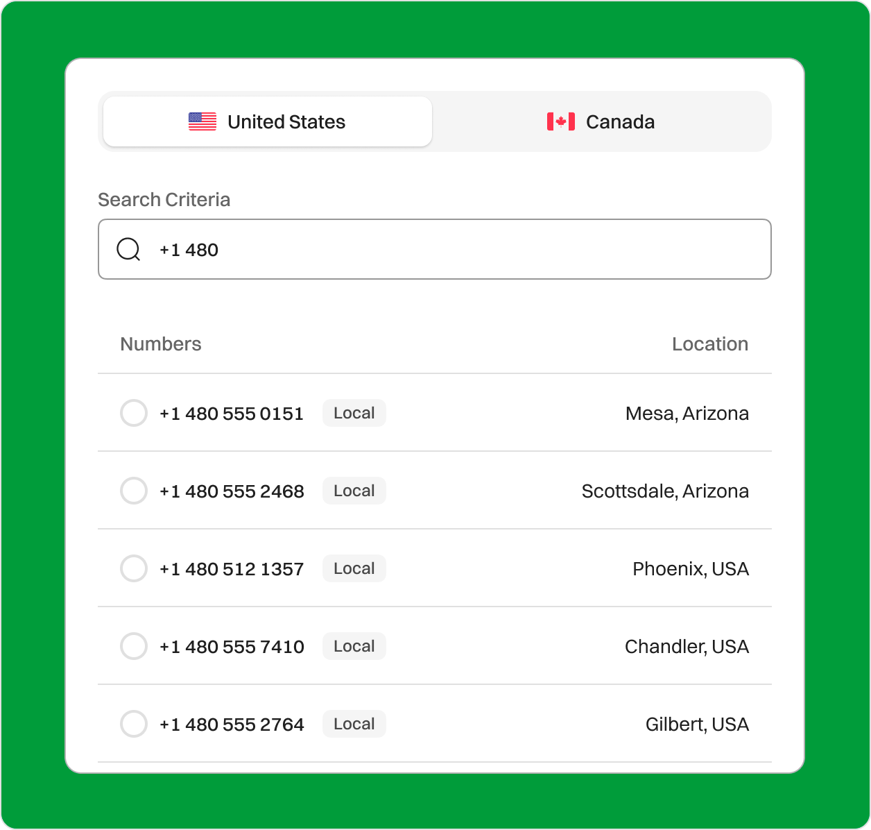 Purchasing area code 480 from us gives you access to advanced features such as voicemail, call recording, video conferencing, call routing, Interactive Voice Response (IVR), and more.