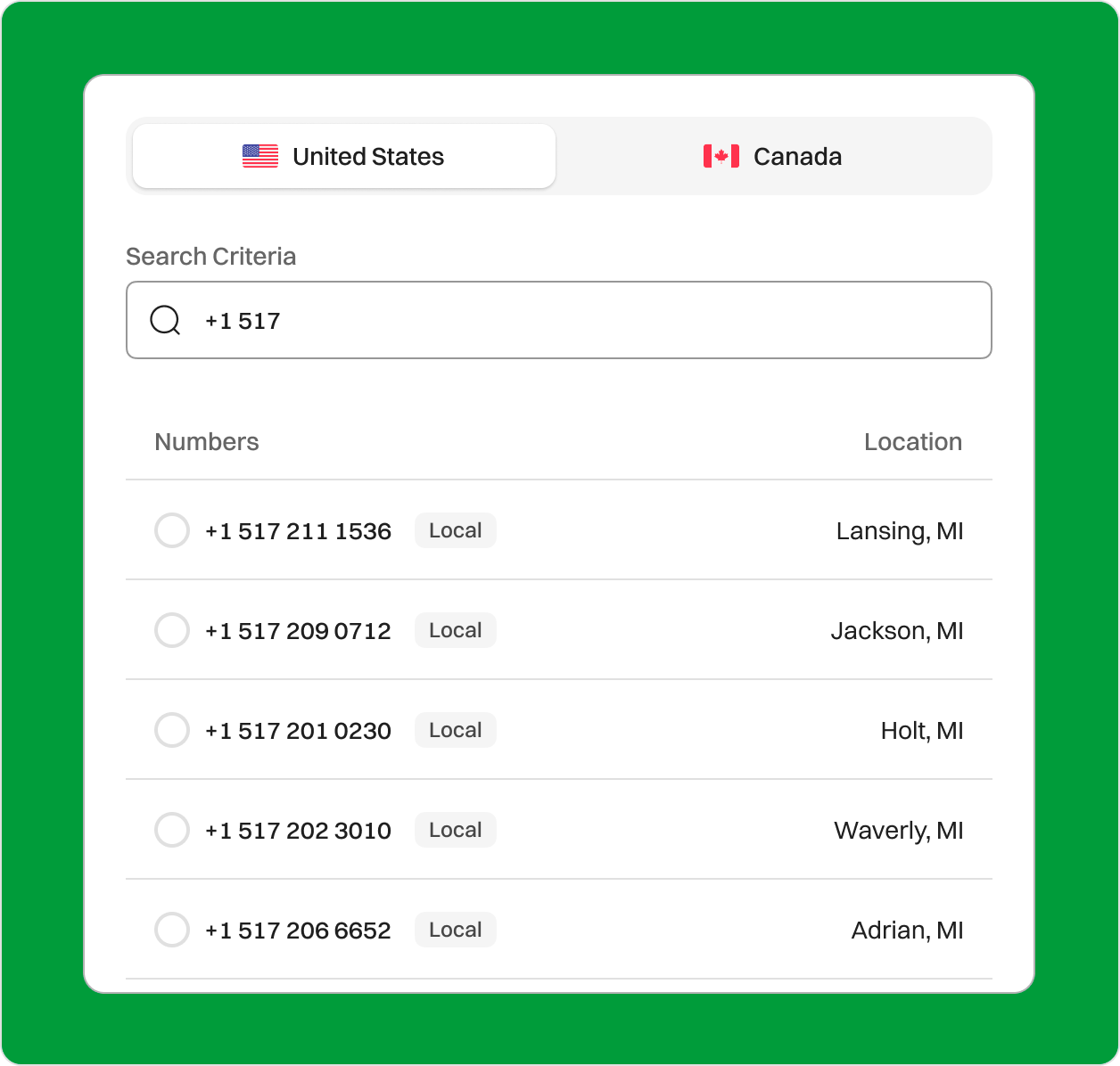 Empower Your Michigan Business with a 517 Area Code in Lansing Expanding your business reach in mid-Michigan is simple with a 517 area code phone number from Dialaxy. Whether you’re targeting clients in Lansing, Jackson, or East Lansing, a 517 number helps you establish a trusted local presence and enhance your communication strategy. Sign upRequest a Demo Endorsed by top industry leaders Trusted by industry experts for excellence and innovation. What is area code 517? The 269 area code is basically located in southwestern Michigan, USA. It basically covers an area which has several significant towns and cities.This area code was developed in 2002 after breaking from the area code 616 to handle the growing demand of the phone numbers. There are 12 different counties covered by area code 517, including Ingham, Jackson, Lenawee, Livingston, Eaton, Calhoun, Hillsdale, Branch, and Clinton. Area code 517 was put into service in 1947 as one of the original 86 area codes, covering Michigan’s south-central lower peninsula, including Lansing. The nearby area codes where you can find other major cities are 248/947 (Troy, MI), 260 (Fort Wayne, IN), 269 (Kalamazoo, MI), 419/567 (Toledo, OH), 517 (Lansing, MI), 616 (Grand Rapids, MI), 734 (Ann Arbor, MI), 810 (Flint, MI), 989 (Saginaw, MI). Country USA State Michigan Major City Lansing Time Zone Eastern Time Zone (EST) Telephone Number Format +1 (517)-XXX-XXXX Example of 517 phone number +1 (517)-322-4321 Example of 517 phone number 48901-49203 How to get a 517 Area Code Phone Number? You can purchase a 517 area code phone number from a VoIP service provider like Dialaxy. You can follow these steps. Sign up on the official Dialaxy website or mobile app. Log in to your account and navigate to the dashboard. Select “My Number” from the “Portal” menu. Click on “Buy Number.” Choose the US as your country and select the 517 area code from the list. Complete the payment and submit any required documents. How does a 517 business Phone Number work? When it comes to making and receiving phone calls, the 517 business phone number works just as any other number in the USA. It acts as a unique identification for a company working in the 517 area code, making it easier for customers to find and connect with firms that exist within or near Detroit. In addition to allowing local calls inside the 517 areas, it allows an international connection. When a customer places a call to the business using the 517 number, the call is directed through the local telecommunications infrastructure to connect with the business’s phone system, thereby allowing the business to field calls from customers, clients, and partners. As an example, to reach the number 322-4321, you’d dial +1 517-322-4321, with 1 being the country code for the USA. The 517 acts as an area code, directing calls to the appropriate geographic area, while 322 serves as an exchange or central office code, guiding the call to a specific carrier or service provider. The last set, 4321, is the subscriber number, identifying the specific business or individual being reached. Who’s doing business in the 517 Area code? The 517 area code covers a region rich in opportunities for various industries. The state capital, Lansing, is home to government offices, educational institutions, and a growing healthcare and tech sector. The area is also a hub for agriculture, manufacturing, and professional services, with businesses of all sizes thriving. Some key industries in the 517 area code include: Government & Public Services State of Michigan offices, Lansing City Council Education Michigan State University, Lansing Community College Healthcare Sparrow Health System, McLaren Greater Lansing Manufacturing General Motors Lansing, Pratt & Whitney AutoAir Retail & Services Jackson National Life Insurance, Meijer, Inc. Technology TechSmith Corporation, Liquid Web Why Does Your Business Need a 517 Area Code Number? Build a Local Presence in Mid-Michigan A 517 number connects your business to the communities of Lansing, Jackson, and East Lansing. Even if your business is based outside of Michigan, having a local number helps to build trust with customers. Simplify Communication Dialaxy's 517 area code number allows you to manage all your communications from one platform, keeping business calls separate from personal ones. No Special Equipment Required You can use your existing devices smartphones, laptops, or tablets to make and receive calls using your 517 number. No extra hardware is required. Affordable Plans Dialaxy’s VoIP plans start at $20 per user per month, offering a cost-effective solution for small and large businesses alike. Advanced telephony features Use 517 phone numbers from the Dialaxy mobile app to access all telephony features. For effective call management in business, benefit from enhanced calling features like Number Sharing, Unified Callbox, Call Blocking, Call Monitoring, Call Forwarding, Call Transfer, Interactive Voice Response (IVR), and many more. Integrates with Your Business Tools Your 517 area code number integrates seamlessly with CRM systems and other business tools, allowing you to track and manage customer interactions efficiently. Enjoy 100+ Dialaxy’s features with local phone number Call, SMS, & Contact in one easy to use app. Phone Numbers Global Calling SMS Voicemail Number Sharing Contacts All Features Phone Numbers Expand your reach with Virtual Phone Numbers International Numbers: Establish a local presence of your business with our international phone numbers . Toll Free Numbers: Elevate your sales strategy and drive business growth with Toll Free Numbers. Multiple Phone Numbers: Use multiple phone numbers in one single dashboard. Explore our apps Global Calling Connect globally with effortless calls Extended Reach: Enables businesses to expand their market by reaching international customers. Flexibility: Allows employees to make international calls from anywhere