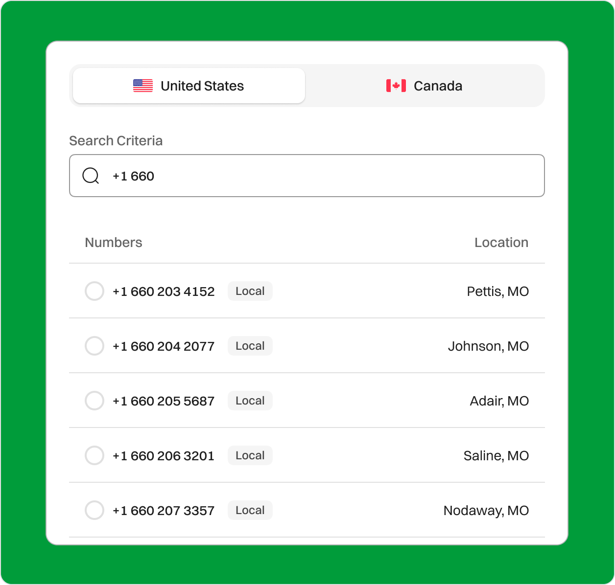 Unlocking Business Potential with the 660 Area Code for Your Business! Are you looking to expand your business reach within Missouri and connect with potential customers in growing communities? Dialaxy offers virtual phone numbers with the 660 area code, enabling businesses to tap into a dynamic region with robust growth potential. Sign upRequest a Demo Endorsed by top industry leaders Trusted by industry experts for excellence and innovation. What is the 660 Area Code? The 660 area code serves a broad region in northern and central Missouri. Known for its diverse range of industries and growing economy, this area code provides businesses with access to a dynamic market that includes sectors such as agriculture, manufacturing, education, and healthcare. From small towns to larger cities, the 660 area code offers businesses a blend of opportunities to build a local presence while engaging with a broad spectrum of potential customers. Established under the North American Numbering Plan (NANP), the 660 area code includes key cities like Kirksville, Sedalia, and Warrensburg, among others. These areas offer strategic benefits to businesses due to their proximity to both rural and urban areas, as well as easy access to major highways and interstates. The area code operates within the Central Time Zone, allowing your business to align with most of the U.S. business hours. The 660 area code is the perfect choice for companies aiming to establish a local presence in Missouri while benefitting from a vibrant, growing community with diverse industries. Country USA State Missouri Major City Kirksville Time Zone Central Time Zone Telephone Number Format +1 660-XXX-XXXX Example of 660 phone number +1 660-205-0214 How to Get a 660 Area Code Phone Number? Getting a 660 area code number for your business through Dialaxy is simple. Here’s how you can get started: Sign up on the official Dialaxy website or mobile app. Log in to your account and navigate to the dashboard. Select “My Number” from the “Portal” menu. Click on “Buy Number.” Choose the US as your country and select the 660 area code from the list. Complete the payment and submit any required documents. Once you’ve completed these steps, your new 660 area code number will be ready to use. Dialaxy’s VoIP services will ensure seamless connectivity for your business, regardless of where you are located. How Does a 660 Area Code Business Phone Number Work? The 660 area code allows businesses to easily connect with local customers, making it an essential communication tool for companies targeting Missouri-based clients. Using a 660 area code number provides several benefits, such as gaining credibility in the local market and enhancing customer trust. Dialaxy’s cloud-based platform also ensures flexibility, allowing your business to manage business communication from any device. Dialing a 660 Number: Country Code (1): Represents the United States. Area Code (660): Directs the call to the 660 region in Missouri. Local Exchange (e.g., 205): A three-digit code for local exchanges. Subscriber Number (e.g., 1234): The final four-digit line number. Dialaxy offers additional features like call forwarding, voicemail-to-email, and SMS capabilities, ensuring businesses can communicate with customers efficiently, whether in the office or on the go. Call forwarding ensures you never miss an important call, while SMS functionality allows your business to engage customers via text messages. Who is Doing Business in the 660 Area Code? The 660 area code encompasses several industries thriving in the region, offering ample opportunities for businesses to connect with key players in agriculture, healthcare, manufacturing, and education. Key Industries in the 660 Area Code: Agriculture Agriculture is a major industry in the 660 area code, with farming and agribusiness driving the local economy. The region’s fertile soil makes it ideal for growing crops like corn, soybeans, and wheat. American Eagle Fertilizer, based in the area, is a key player in agricultural supplies, supporting the growth of Missouri’s farming industry. Healthcare The healthcare industry in the 660 area is robust, with hospitals, clinics, and medical service providers serving a wide range of communities. Samaritan Hospital, located in the region, is an example of a major healthcare provider that plays an important role in the area’s well-being, offering a wide array of health services and job opportunities. Manufacturing Manufacturing is another essential industry in the 660 area code, contributing significantly to the local economy. The region hosts a variety of manufacturers, particularly those focused on automotive and electronics. Bradken, an industrial manufacturing company, has a facility in the area, producing parts for heavy machinery and equipment. Education The education sector plays a crucial role in the 660 area, with institutions such as the University of Central Missouri in Warrensburg offering a wide range of degree programs. These institutions work closely with local businesses to foster talent and contribute to workforce development in the region. Retail Retail businesses in the 660 area code benefit from an expanding population and active local economy. Walmart, with multiple locations in the region, serves as a major retail hub, offering products to local residents and businesses alike and boosting the region's economy. Transportation and Logistics Due to its central location, the 660 area code is also home to several transportation and logistics companies. Keen Transport, located in the area, offers logistics services that support the transportation of heavy equipment across the country, playing a key role in the region’s supply chain infrastructure. By obtaining a 660 area code number, your business can establish connections in these industries and tap into a wealth of opportunities in the region. Why Choose the 660 Area Code for Your Business? Boost Y