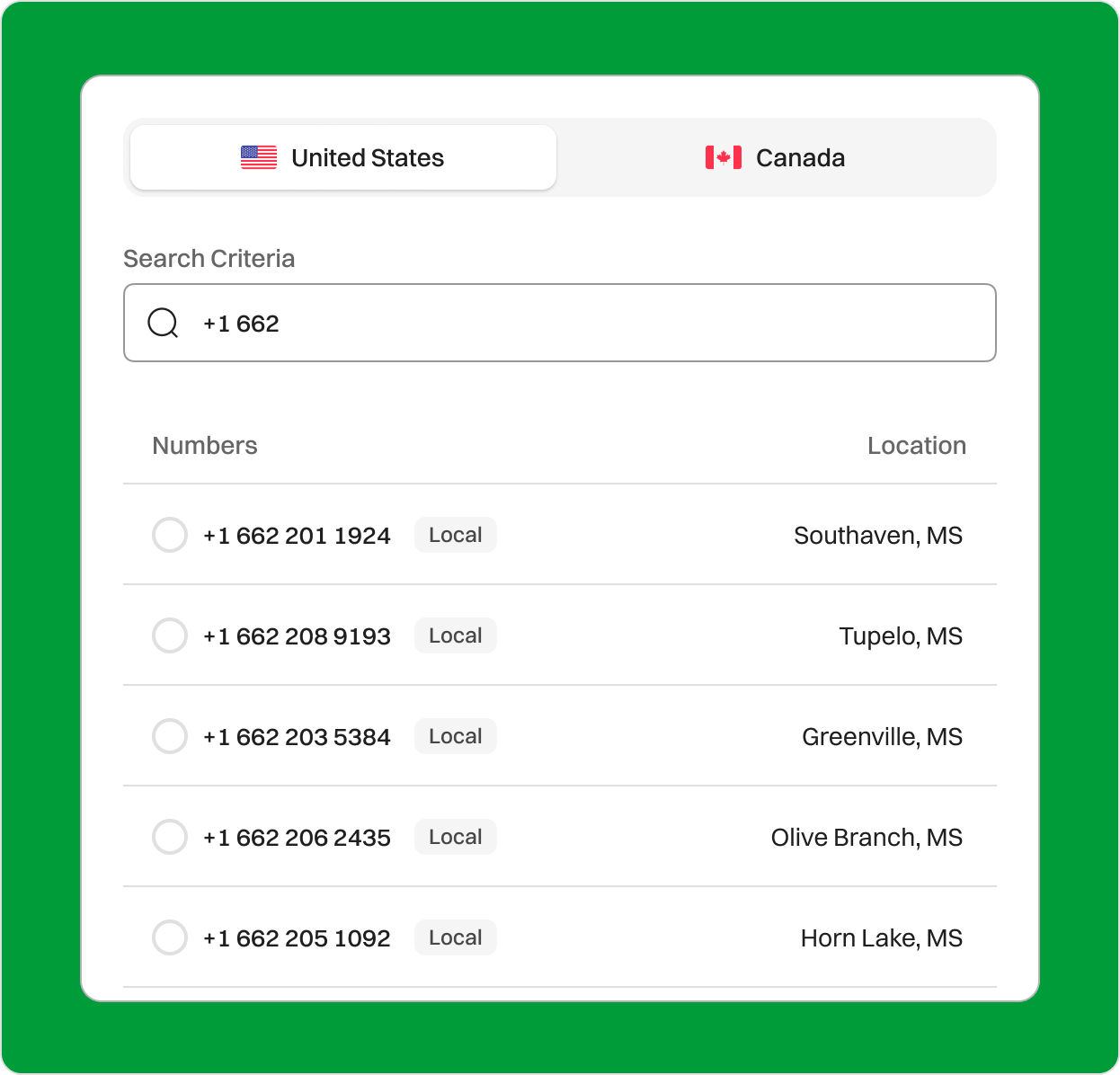 Expand Your Business with the 662 Area Code in Mississippi! Are you looking to expand your business into Mississippi’s thriving market? With Dialaxy, securing a 662 area code virtual phone number lets your business establish a strong local presence and connect seamlessly with a community rich in potential. Sign upRequest a Demo Endorsed by top industry leaders Trusted by industry experts for excellence and innovation. What is the 662 Area Code? The 662 area code serves the northern half of Mississippi, covering an expansive region that includes cities such as Tupelo, Southaven, and Oxford. Known for its rich history and diverse economy, this area is home to industries like healthcare, manufacturing, education, and agriculture. The 662 area code connects your business to a region known for its growth and vibrant local culture, making it an ideal choice for businesses seeking to establish credibility and trust with local customers. Mississippi’s 662 area code provides opportunities to tap into thriving industries while enjoying the benefits of a growing population. The region’s blend of modern industry and deep-rooted traditions offers businesses an environment ripe for expansion. Operating in the Central Time Zone, the 662 area code aligns with many major U.S. regions, making it a convenient choice for businesses that need to maintain seamless communication with clients and partners across the country. Country USA State Mississippi Major City Tupelo, Southaven, Oxford Time Zone Central Time Zone Telephone Number Format +1 662-XXX-XXXX Example of 662 phone number +1 662-436-0123 How to Get a 662 Area Code Phone Number? Setting up a 662 area code virtual number with Dialaxy is simple and hassle-free. Follow these steps: Sign up on the official Dialaxy website or mobile app. Log in to your account and navigate to the dashboard. Select “My Number” from the “Portal” menu. Click on “Buy Number.” Choose the US as your country and select the 662 area code from the list. Complete the payment and submit any required documents. Once activated, your 662 area code number will be ready to use. With Dialaxy, you can enjoy advanced VoIP features that streamline your business communication, no matter where you are. How Does a 662 Area Code Business Phone Number Work? The 662 area code, part of the North American Numbering Plan (NANP), is designed to connect businesses to local customers across northern Mississippi. A 662 area code phone number gives businesses a credible local identity and helps them establish trust with the community. Dialing a 662 Number: Country Code (1): Represents the United States. Area Code (662): Routes the call to the northern Mississippi region. Local Exchange (e.g., 436): Three-digit code for the local exchange. Subscriber Number (e.g., 0123): The final four digits of the phone number. Dialaxy enhances the utility of your 662 area code number with features like call routing, voicemail-to-email, SMS capabilities, and more, ensuring your business operates efficiently. Who is Doing Business in the 662 Area Code? The 662 area code spans industries that are integral to Mississippi’s economy. Here are some key industries and companies thriving in this region: Healthcare Northern Mississippi is home to a robust healthcare sector. North Mississippi Medical Center, located in Tupelo, is one of the largest non-metropolitan hospitals in the U.S. It provides world-class healthcare services and supports the region's growing population. Manufacturing The manufacturing industry is a significant contributor to the 662 economy. Viking Range, a leading kitchen appliance manufacturer based in Greenwood, operates extensively within the area, showcasing the region's industrial strength. Education Mississippi's educational institutions, including the University of Mississippi (Ole Miss) in Oxford, drive innovation and community growth. The university's impact extends beyond academics, contributing to local businesses and workforce development. Agriculture The 662 area code covers a region known for its agriculture, particularly cotton and soybean farming. Sanderson Farms, a top poultry producer, also operates in northern Mississippi, highlighting the area's agricultural significance. Retail Retail businesses thrive in the 662 area code. Barnes Crossing Mall in Tupelo attracts shoppers from across the region, serving as a hub for local and national retailers. Tourism Tourism plays a key role in the 662 economy. The Elvis Presley Birthplace in Tupelo draws fans from around the world, boosting the local economy and supporting hospitality businesses. Why Choose the 662 Area Code for Your Business? Establish Local Credibility A 662 area code number signals that your business is part of the northern Mississippi community. Customers are more likely to trust and engage with a local number, helping you build stronger relationships. Expand Your Market Reach The 662 area code covers growing cities and towns that offer diverse market opportunities. Whether your business focuses on retail, healthcare, or manufacturing, a local number helps you tap into new customer bases effectively. Cost-Effective Communication Dialaxy’s VoIP solutions make it affordable to maintain a 662 area code number. With low operating costs and no hidden fees, your business can enjoy seamless communication without stretching your budget. Advanced Communication Features Dialaxy provides call forwarding, voicemail-to-email, and automated attendants to help you manage incoming calls efficiently. These features enable your business to stay responsive and organized, whether you're in the office or on the go. Flexibility and Accessibility A cloud-based 662 area code number allows you to stay connected from anywhere. Whether you're working remotely or expanding into new locations, Dialaxy ensures uninterrupted communication. Enhance Customer Experience A local phone number offers a personal touch that resonates with custom