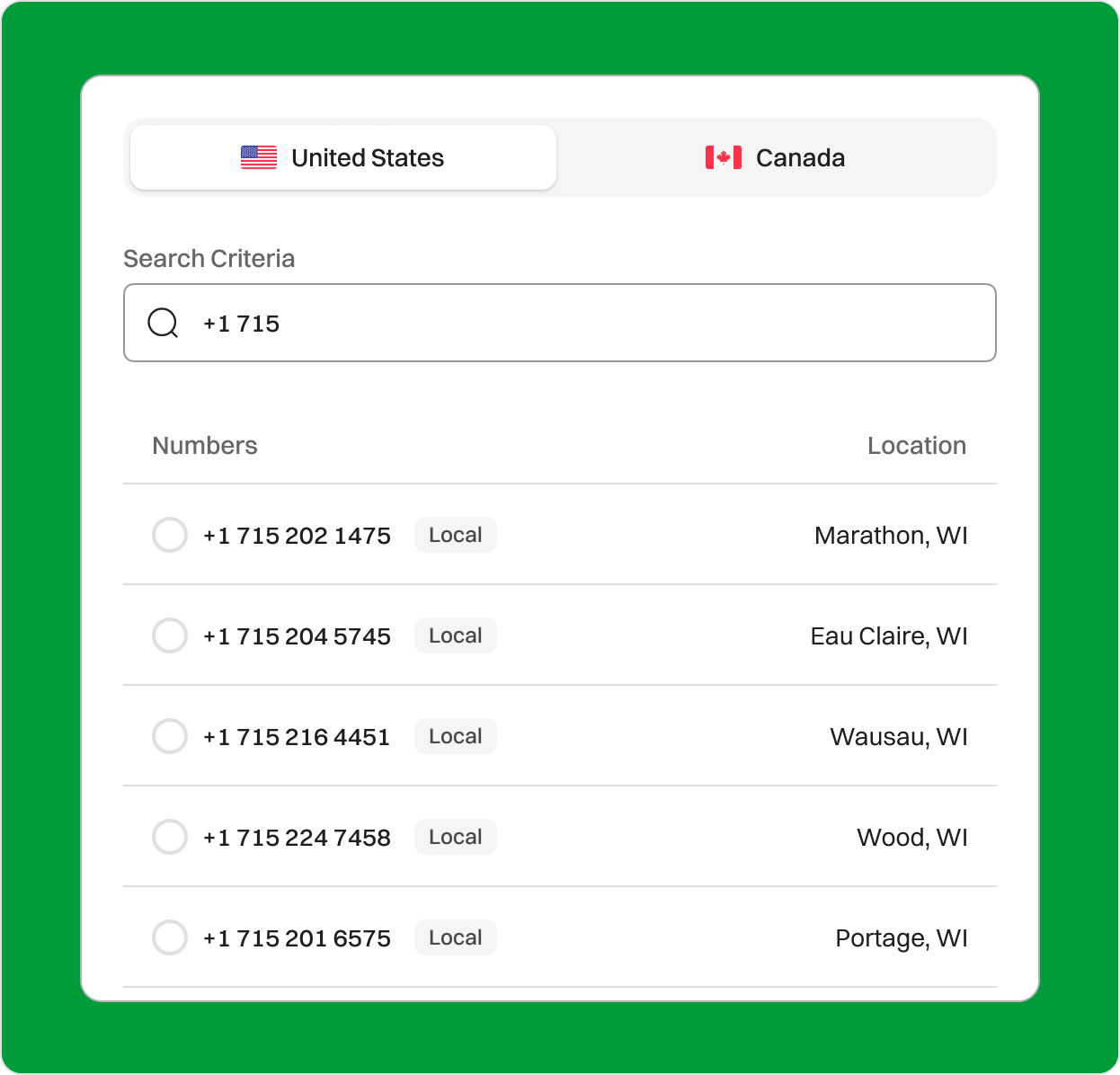 Connect Your Business in Northwestern Wisconsin with a 715 Area Code You can expand your business into northern Wisconsin. A virtual 715 phone number helps you reach this important market. When customers see your local phone number, it establishes an immediate local presence. This guide provides all the code information you need. Sign upRequest a Demo Endorsed by top industry leaders Trusted by industry experts for excellence and innovation. What is area code 715? The area code 715 is a primary telephone area code. It is part of the North American Numbering Plan. This code is located in the northern part of Wisconsin. The area code has a long history. It was established in 1947. The entire region operates on Central Time (CST). This code Wisconsin serves is vast. The list of cities covered includes major hubs. Key cities are Eau Claire, Wausau, and Superior, WI. It also includes communities like Wisconsin Rapids and Chippewa Falls. The area code serves large counties. These include Eau Claire County and Marathon County. The North American Numbering Plan later added an overlay. This was area code 534. It was created to meet the growing demand for phone numbers. This change ensured a steady supply of numbers for the region. Country USA State Wisconsin Major City Eau Claire Time Zone Central Time Zone Telephone Number Format +1 (715)-XXX-XXXX Example of 715 phone number +1 (715)-487-4567 Zip Code 54000-54999 How to get a 715 Area Code Phone Number? You can purchase a 715 area code phone number from a VoIP service provider like Dialaxy. You can follow these steps. Sign up via the official website or mobile app. Log in with your credentials to access your dashboard. Click the “My Number” option under the “Portal” menu. Select the “Buy Number” option. Choose “US” as the country and select the desired 715 area code from the list. Make payment and submit necessary documents if required. How does a 715 Area Code Business Phone Number work? A 715 area code number works within the North American Numbering Plan. This numbering plan governs all phone numbers in the region. Callers must dial the full 10-digit number for all local calls. Here is the format for a 715 phone number. Country Code (1): This represents the United States. Area Code (715): This directs the call to the northern Wisconsin region. Exchange Code (e.g., 487): This routes the call to a specific local exchange. Subscriber Number (e.g., 5678): This is the unique four-digit line number. Every Dialaxy plan gives you a local phone number. You can send text messages. You can manage all calls from one simple platform. Who’s doing business in the 715 Area code? The 715 area code is home to many successful businesses. These companies represent diverse industries. Key sectors include manufacturing, healthcare, and education. Companies of all sizes operate in the cities covered by this code. Healthcare and Medical Services The healthcare sector is a major employer in the region. Large health systems have a significant local presence. They serve communities across Marathon County and beyond. Advanced Manufacturing Advanced manufacturing is a cornerstone of the economy. Many industrial companies operate in the Eau Claire-Wausau corridor. They are a vital part of the many cities covered by this code. Agriculture and Food Production Agriculture is a foundational industry in northern Wisconsin. Food production companies and large farms are major employers. They rely on a local phone to manage logistics in areas like Wisconsin Rapids. Higher Education Higher education institutions are vital to the region. The city of Eau Claire is home to a major university. This drives innovation throughout Eau Claire County. It also provides a skilled workforce. Tourism and Hospitality The tourism industry thrives on the region's natural beauty. Businesses near Lake Superior and in cities like Superior, WI serve many visitors. A local number makes booking and communication easier for customers. Tourism and Hospitality Major insurance companies are based in the area code 715. These financial institutions have built national brands from this region. A local number is essential for their trust and credibility. A 715 area code number allows your business to integrate with Minnesota’s expanding economic landscape, particularly in suburban hubs that support Minneapolis. Why Does Your Business Need a 715 Area Code Number? Establish a Strong Local Presence An area code 715 number gives your business an immediate local presence. This is true even if you operate from another city. It makes it easier for customers in the Eau Claire-Wausau area to connect with you. Improve Trust and Credibility Customers are more likely to trust a local phone number. It signals that you are a legitimate part of their community. This improves call answer rates. It helps build lasting customer relationships. Separate Work and Personal Calls A dedicated business number helps protect your privacy. You can keep your personal cell phone number private. This ensures all your business communications remain professional. No Extra Hardware Needed You can use your 715 phone number on your existing devices. This includes your smartphone, laptop, or tablet. You do not need to buy any special equipment. Simply download the Dialaxy application to get started. Affordable VoIP Plans Dialaxy offers flexible and affordable VoIP plans. This makes it an ideal choice for businesses of any size. Our plans are designed to scale with your business needs. Powerful Business Features Our system includes advanced features. You get call forwarding, IVR, and call analytics. You can also send and receive text messages. These tools help you manage communications effectively. Enjoy 100+ Dialaxy’s features with local phone number Call, SMS, & Contact in one easy to use app. Phone Numbers Global Calling SMS Voicemail Number Sharing Contacts All Features Phone Numbers Expand your reach with Virtual Phone Nu