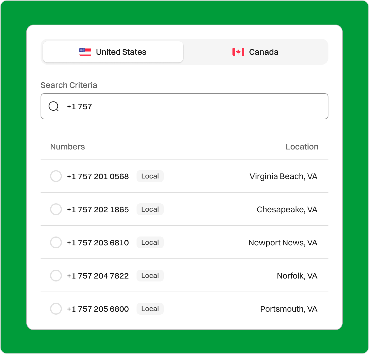 Expand Your Business with a 757 Area Code Virtual Number in Virginia! Looking to grow your business in southeastern Virginia? With Dialaxy’s virtual phone numbers, you can establish a strong local presence in cities like Virginia Beach, Norfolk, Chesapeake, and Newport News. A 757 area code number helps you build credibility, connect with local customers, and strengthen your foothold in this dynamic and economically diverse region. Sign upRequest a Demo Endorsed by top industry leaders Trusted by industry experts for excellence and innovation. What is area code 757? The 757 area code is located in the southeastern region of Virginia, covering a variety of coastal and inland cities. Major cities within this area code include Norfolk, Virginia Beach, Chesapeake, Newport News, Portsmouth, and Hampton. The 757 area code serves multiple counties, including Virginia Beach City, Norfolk City, James City County, York County, and Isle of Wight County. According to the World Population Review, the 757 area code covers a densely populated region with a population of approximately 1.8 million residents. Some of the nearby area codes include 804 (Richmond, VA) and 252 (North Carolina). The area code 757 operates in the Eastern time zone. It follows UTC-5:00 hours during standard time and shifts to UTC-4:00 during daylight saving time. The region covered by the 757 area code includes a broad range of ZIP codes, running from 23301 to 23709. Country USA State Virginia Major City Virginia Beach Time Zone Eastern Time Zone Telephone Number Format +1 (757)-XXX-XXXX Example of 757 phone number +1 (757)-215-4567 Zip Code 23011-23899 A Brief History of the 757 Area Code In 1996, the 757 area code was introduced as a split from the 804 area code in response to the growing demand for telephone numbers in southeastern Virginia. Since its inception, it has played an essential role in the region’s telecommunications network, serving both residential and business communities. The 757 area code is vital to several industries, including tourism, military, shipbuilding, and education. Over the years, it has supported local businesses, government agencies, and major military installations, making it a key component of Virginia’s economy and infrastructure. How to Get a 757 Area Code Phone Number? You can purchase a 757 area code phone number from a VoIP service provider like Dialaxy. You can follow these steps. Sign up on the official Dialaxy website or mobile app. Log in to your account and navigate to the dashboard. Select “My Number” from the “Portal” menu. Click on “Buy Number.” Choose the US as your country and select the 757 area code from the list. Complete the payment and submit any required documents. How does a 757 Area Code Business Phone Number work? A 757 business phone number works similarly to other U.S. phone numbers, allowing you to make and receive calls locally and internationally. It enables your business to establish a local presence in southeastern Virginia without needing any physical location. For example, if you need to call a business in Norfolk with the number 215-5678, you would dial +1 (757) 215 5678. In this case, +1: The U.S. country code. 757: The area code. 215: The exchange code. 5678: The subscriber number. Who’s Doing Business in the 757 Area Code? The 757 area code is home to a variety of businesses across different industries, making it a crucial economic hub in Virginia. Key industries include tourism, military, shipbuilding, healthcare, and education. Here are some notable businesses and institutions operating in the area: Military & Defense Military facilities and defense contractors utilize 757 numbers for internal organizational divisions, public affairs access offices, and service coordination. Using a local number allows military members to maintain public, media, family, and federal partners' accessibility, as in the case of Naval Station Norfolk. Shipbuilding & Manufacturing Businesses such as Newport News Shipbuilding and STIHL Inc. utilize 757 numbers when working with suppliers, vendors, government agencies, or when hiring talent locally. 757 phone numbers support their work within the Hampton Roads region. Education 757 phone numbers are used by academic institutions like Old Dominion University and Christopher Newport University for admissions, student services, faculty offices, and outreach programs. Local numbers may facilitate engagement in the community and make it easier for prospective students to contact staff. Tourism & Hospitality 757 numbers enable hotels, attractions, and tourism organizations to connect with visitors, manage bookings, and provide local information. The Virginia Beach Convention & Visitors Bureau and the Colonial Williamsburg Visitor Center, for example, can enhance trust and establish that tourists are connecting with a recognized and verified local provider. Healthcare An example of the utilization of a local phone number is hospitals and healthcare systems; appointments, billing, emergency services, and community outreach are part of the reality these entities know from past experience. For example, Sentara Healthcare and Riverside Regional Medical Center both use 757 numbers to consolidate their patients' communication. Port & Maritime Logistics The Port of Virginia and various logistics providers utilize area code 757 phone numbers for freight movement, customs, and communications related to international trade. It serves the international shipping, warehousing, and regional transportation industries. Why Does Your Business Need a 757 Area Code Number? Get Started Fast Dialaxy makes it easy to set up your 757 area code business number so you can establish a local presence in minutes. No complex installations or hardware are needed—just sign up and start making and receiving calls right away. Separate Work and Personal Calls Using a 757 number ensures that your work and personal calls stay separate, helping you mai