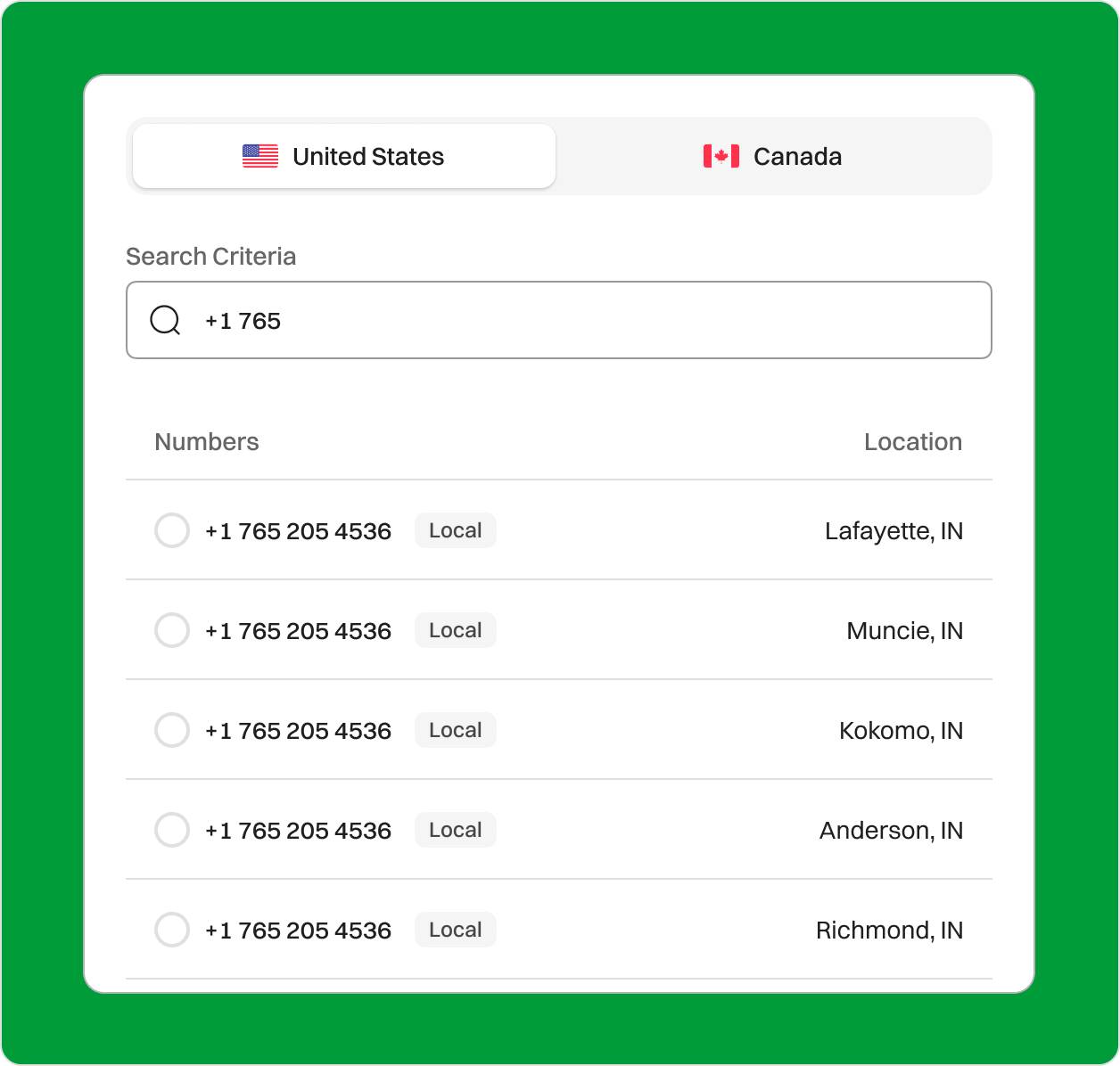 Boost Your Business with a 765 Area Code in Muncie, Indiana Thinking about launching a business in Muncie, Indiana? Secure a telephone area code 765 phone number from Dialaxy, quickly and efficiently, to establish a strong local presence and build customer trust. Sign upRequest a Demo Endorsed by top industry leaders Trusted by industry experts for excellence and innovation. What is area code 765? Area code 765 is used for phone numbers in central Indiana, surrounding the Indianapolis metro area and connecting key cities like Lafayette, Muncie, Anderson, and Kokomo. This code serves a large part of central Indiana and plays a key role in keeping the region connected. The cities and counties covered include Marion and West Lafayette, along with many smaller towns like Battle Ground, Clarks Hill, and Union City. This area code 765 location is unique to its geographic regions and the cities and counties it serves, meaning it’s the only one used across these communities. It stretches across several counties, such as Tippecanoe County, Madison County, Delaware, Grant, and Howard, helping both residents and businesses stay connected throughout the heart of Indiana. Its boundaries are clearly defined on any area code time map. This area code was created on February 1, 1997, as the 186th area code under the North American Numbering Plan Administration and one of 43 new area codes that began to serve that year. It is the fourth of the current eight Indiana area codes. The area code was introduced to take some pressure off the 317 area code since the 317 area code was exhausting available numbers. Country USA State Indiana Major City Muncie Time Zone Eastern Time Zone(ETC) Telephone Number Format +1 (765)-XXX-XXXX Example of 765 phone number +1 (765)-747-4321 Zip Code 473XX (Muncie) 479XX (Lafayette) 469XX (Kokomo) How to get a 765 Area Code Phone Number? You can purchase a 765 area code number from a VoIP service provider, such as Dialaxy. Our step-by-step guides make it easy. Sign up on the official Dialaxy website or mobile app. Log in to your account and navigate to the dashboard. Select “My Number” from the “Portal” menu. Click on “Buy Number.” Choose the US as your country and select the 765 area code from the list. Complete the payment and submit any required documents. How does a 765 business Phone Number work? A 765 business telephone number is identical to any local phone number. As soon as one dials a number like that, the call will be directed to the owner of that number by the local telecommunications network. So, let’s say you need to call IU Health Ball Memorial Hospital. Their main line is 747-3111, but if you’re making long-distance calls from outside the U.S., you’d dial +1 765-747-3111. That “+1” bit? Yeah, that’s Uncle Sam’s country code. “765” is the area code; think of it as the hospital’s neighborhood on the code map. “747” directs the call to the right local exchange, and “3111” is the hospital’s number. The whole thing, known as 10-digit dialing, is like an address, just for phones. Who’s doing business in the 765 Area code? The 765 area code serves a diverse range of businesses, from small to large. The region is home to a mix of small and large businesses, along with a variety of health service providers operating across different locations. Educational Institutions Ivy Tech Community College, Ball State University. These schools give back to the local community by educating its members and preparing them for future careers, which is vital for a community with a diverse median age and low unemployment rate. Technology Companies 765 area tech companies use 765 numbers as a way to stay in touch while continuing to drive technology forward. Technology in this area couples innovative solutions with hometown values. The 765 area code is home to tech companies such as Accutech Systems Corporation, Intangible Technologies, and Moneytree Software. Healthcare/Hospitals Local numbers allow medical professionals to offer reliable care close to home. Healthy living rests on easy, reliable care in our community. IU Health Ball Memorial Hospital and AMG Specialty Hospital are popular health centres under this area code. Bank and Finance Local credit unions and banks help families and businesses manage money personally. Community-rooted financial services make us stronger as a community. Financial institutions in the area include Ball State Financial, PrimeTrust Federal Credit Union, and Northwest Bank. Real Estate There are companies such as RE/MAX Real Estate Groups, Kramer Real Estate Group, and Starr Real Estate in this area. 765 area code real estate agents assist neighbors in finding homes and investing. Neighborhood market savvy is crucial for both selling and buying. Manufacturing Several manufacturing companies use the 765 area code as a means of keeping their business local and connected. Manufacturing produces jobs and maintains the backbone of the local economy, which is critical for its growth and development, with skilled, hands-on labor. These are well-established companies in Muncie, Kokomo, and surrounding towns that help support the local economy. The 765 area code unites them, a symbol of trust and community pride, and a local first company culture. Why Does Your Business Need a 765 Area Code Number? Establish A Local Presence in Muncie Secure a Muncie-based phone number with the local area code to establish a presence in the region, even if you are located elsewhere. Having a 765 area code lets you connect with people in the local community and provide more personalized service, making interactions at their local times easier for your customers. No Special Hardware Required With the Dialaxy app, you don’t need to invest in expensive hardware, saving time and money. Your 765 area code number works seamlessly on your existing devices, whether it's a smartphone, tablet, or computer. No Long Distance Fees With Dialaxy, it 