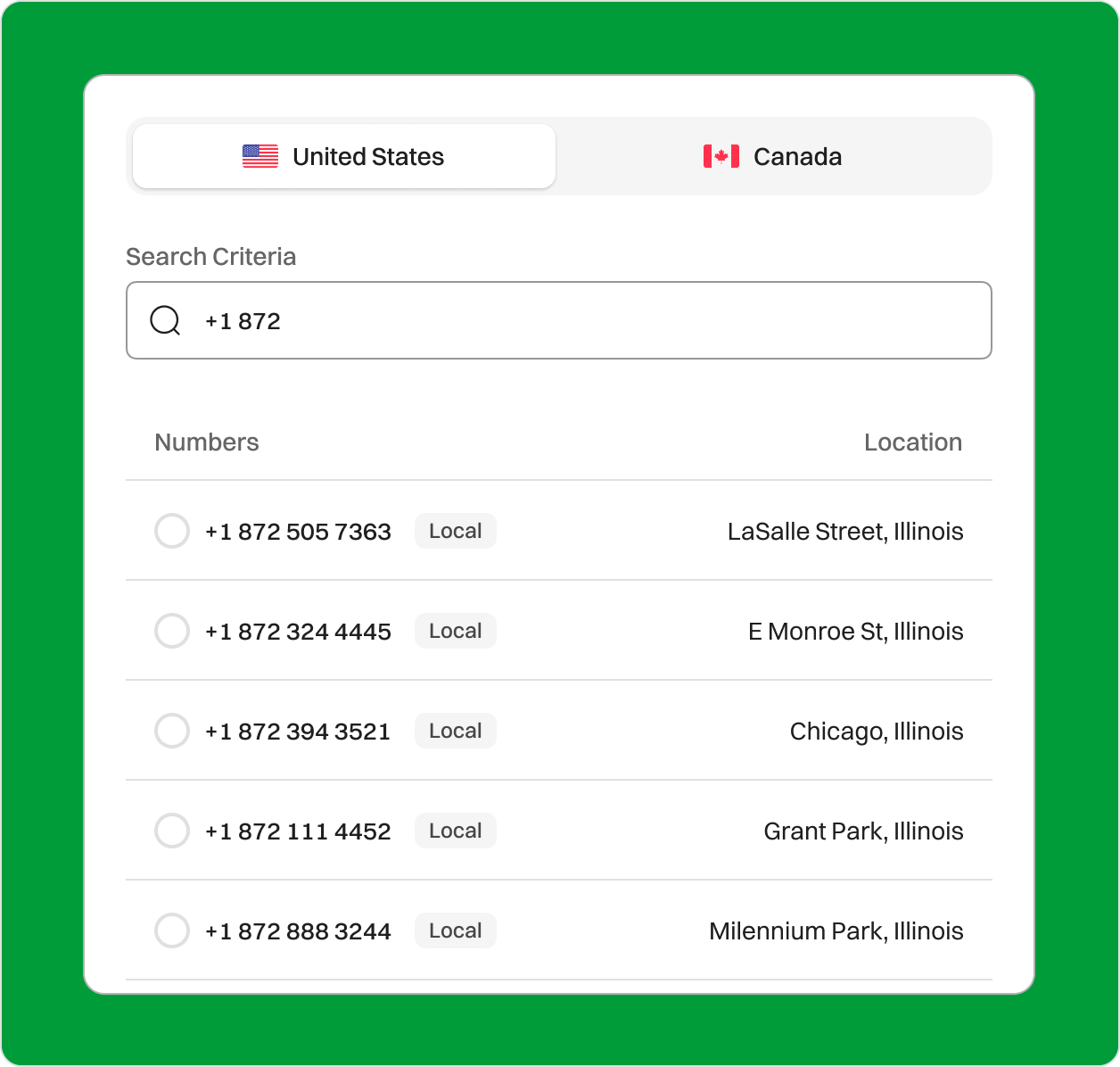 Improve your business presence in Chicago and the surrounding areas by using an 872 area code number through Dialaxy. Whether you’re operating in the heart of Chicago or the nearby communities, having an 872 number helps to establish a strong local presence, building trust and credibility among the customers.