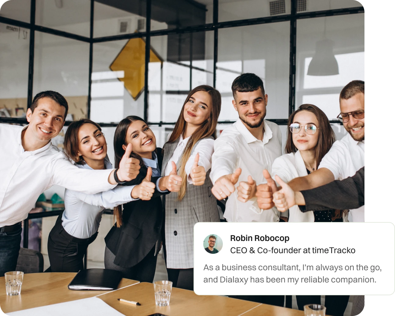 Inspiring words from our Customers Dialaxy has been loved by thousands of Entrepreneurs, CEOs, and Team Leads. Here are some of the words from them who love using Dialaxy Sign upRequest a Demo Feedback Matters Most: What does our customer say? We deliver top-notch contact center solution services, praised by customers for reliability and seamless connectivity. “Dialaxy has been a game-changer for our startup, revolutionizing our communication strategies. The comprehensive features for monitoring and optimizing communication activities have proven invaluable, enabling us to streamline operations and enhance productivity. Its impact on our efficiency cannot be overstated.” Sarah Rodriguez Co-Founder “As a business consultant, I’m always on the go, and Dialaxy has been my reliable companion. The call recording and analytics features have allowed me to review my client interactions and improve my communication skills. It’s an essential tool that I highly recommend!” “As a business consultant, I’m always on the go, and Dialaxy has been my reliable companion. The call recording and analytics features have allowed me to review my client interactions and improve my communication skills.” Mike Thompson Business Consultant “At the helm as Operations Manager, I prioritize maintaining seamless communication, and Dialaxy stands out as my go-to ally. With its tailored features for e-commerce practitioners, I effortlessly streamline communication workflows, ensuring precision and productivity wherever I am. Undoubtedly, it’s a vital asset for any seasoned e-commerce professional!” John Davis Operations Manager “As a startup, efficient communication is paramount. Dialaxy’s rapid setup and tailored solutions have revolutionized our collaborative efforts, fostering seamless teamwork and boosting productivity. Their intuitive platform adapts effortlessly to our evolving needs, ensuring smooth communication across all levels.” Alex Turner Business Analyst “Dialaxy has become an indispensable ally. The call recording and analytics features enable me to analyze critical communications, refine strategies, and enhance overall leadership effectiveness. It’s an invaluable tool for insurance leaders seeking seamless communication and continuous improvement.” Ryan Anderson Chief Data Officer “Dialaxy has become an invaluable asset. The call recording and analytics features enable me to analyze critical communications, refine strategies, and enhance overall leadership effectiveness. It’s an indispensable tool for small business owners seeking seamless communication and continuous improvement.” Thomas Smith Chief Executive Officer Load More