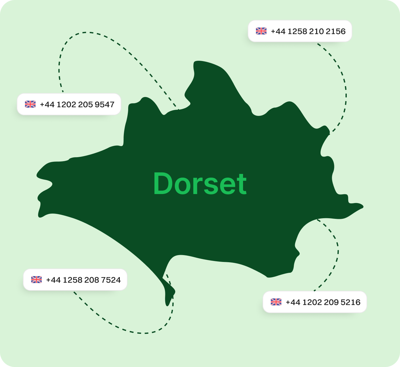 Get Your Dorset Virtual Phone Number Today! Get a local Dorset phone number instantly and connect with communities in Bournemouth, Poole, Dorchester, and beyond. Just one click away from building a strong regional presence across the UK! Sign upRequest a Demo Endorsed by top industry leaders Trusted by industry experts for excellence and innovation. What Is a Dorset Phone Number? A Dorset virtual phone number uses VoIP (Voice over Internet Protocol) to send calls over the internet. You can make and receive calls from anywhere while presenting a local Dorset number to your customers. This makes it ideal for businesses that want to operate in or around Dorset, including areas such as Devon, Hampshire, and Wiltshire. With no need for landlines, you can offer reliable service and expand your reach without being tied to one location. How Does a Dorset Virtual Phone Number Work? Dorset virtual numbers function through internet-based VoIP technology. Rather than using standard phone lines, your voice is converted into digital signals sent over your internet connection. These calls are clear and fast, regardless of your team’s location. You can answer them on mobile devices, desktops, or VoIP-enabled phones. It’s ideal for remote teams and call centers that want to appear local in Dorset’s main business areas, like Bournemouth or Poole. What Can You Do With Dorset Phone Numbers? Make & Receive Calls Send & Receive Texts Separate Work & Personal Establish Local Presence Boost Marketing Efforts Make & Receive Calls Stay in touch with customers in Dorset’s commercial zones. Get Started Send & Receive Texts Use SMS to connect with clients in Poole, Weymouth, and beyond. Get Started Separate Work & Personal Keep your professional and private life separate—perfect for freelancers or small teams. Get Started Establish Local Presence Gain trust using local numbers from Bournemouth or Dorchester. Get Started Boost Marketing Efforts Improve results with local numbers tied to Dorset’s growing markets. Get Started More Ways Dialaxy Supports Your UK Business Better Customer Response Dorset phone numbers help increase response rates by making your business feel local and trustworthy. UK-Wide Coverage Expand easily to nearby areas like Hampshire, Devon, and Somerset with additional local numbers. Keep Your Number Port your current Dorset landline or mobile number into Dialaxy hassle-free. Tailored Business Tools Whether you’re in tourism or marine engineering, our features support your industry. Consistent Branding Utilize local caller IDs to manage your business virtually from anywhere. Specific Area Codes for Dorset Area Code Region Covered 01202 Bournemouth, Poole, and the surrounding coastal areas 01258 Dorchester and nearby towns like Weymouth Why Choose Dialaxy for Your Dorset Virtual Phone Number? Flexible Plans Pay only for what your business needs—ideal for startups or large operations. Instant Activation Select a Dorset area code, such as 01202 or 01305, and go live in minutes. Grow With Ease Add more numbers as your business reaches nearby counties. 24/7 Support Our team is always available, including nights and weekends. Innovative Features Access call routing, voicemail to email, analytics, and a simple dashboard. Cost-Effective Stay connected with Dorset customers affordably. How to Get a Dorset Number with Dialaxy? Step 1 Create an Account Register on Dialaxy using your business or personal email. Step 2 Go to "Add New Number" Access your unified communications dashboard and select this option. Step 3 Choose United Kingdom > Dorset Select Dorset and then your preferred city, such as Leeds or Bournemouth. Step 4 Pick Your Area Code Choose a local code, such as 01202 for Leeds or 01258 for Blandford Forum. Step 5 Make Payment and Verify Securely complete your payment and verify your identity as prompted. Step 6 Activate and Use Your virtual number is ready within minutes for call centres, freelancers, and businesses. Grow Your Business with a Dorset Area Code Central Location Dorset’s access to primary transport links, ports, and coastal tourism makes it ideal for expanding businesses. Local area codes, such as 01202, help boost visibility in these zones. Supports Multiple Sectors From healthcare and tourism to tech startups and education, a Dorset number adds credibility across industries. Expand Seamlessly Use a local number to gain trust in Dorset’s towns, even if your office is elsewhere. Customers are more likely to answer when the number looks familiar. Reliable Technology Enjoy high-quality connections via VoIP, whether you’re using your phone, tablet, or computer. Business-Ready Region Dorset’s strong local economy and skilled workforce make it an ideal base for growing companies. Local numbers help you build loyalty and engagement. Perfect for Startups Start your business journey with a Bournemouth or Dorchester number—no need for physical premises. Explore More UK Regions Greater Manchester Lancashire South Yorkshire North Yorkshire West Midlands Hampshire Surrey Essex Cumbria View all Frequently Asked Questions What is a Dorset virtual phone number?It’s a cloud-powered phone number that works over the internet, using Dorset area codes like 01202 (Bournemouth) or 01258 (Dorset). Can I choose a specific Dorset area code?Yes. You can pick from available Dorset area codes when signing up, ideal for hyper-local branding. Do I have to live in Dorset to use the number?No. You can use your Dorset number from anywhere in the world, perfect for remote businesses. What are the costs?Dialaxy offers fair, flexible pricing for all business sizes, whether you’re targeting Bournemouth, Weymouth, or beyond. Can I send SMS messages?Yes. Many plans include texting, so you can message clients in Dorset with ease. Can I keep my existing number?Yes. We support number porting so you can keep your current Dorset number without service disruption.