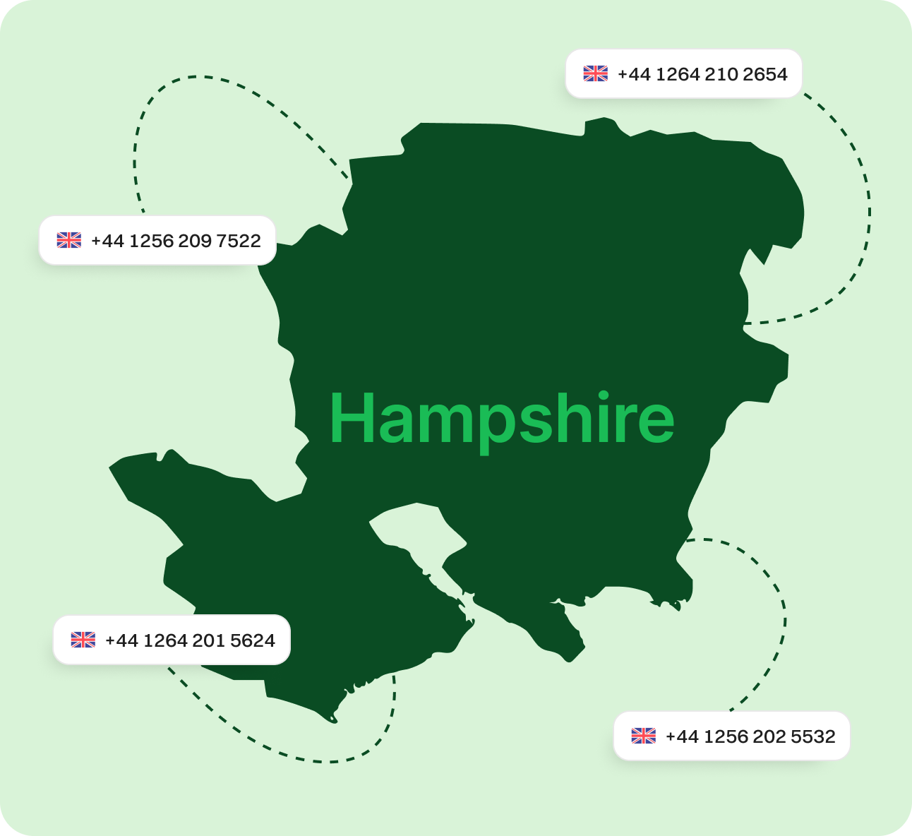 Get Your Hampshire Virtual Phone Number Today! Establish a reliable business presence in Hampshire with local numbers from Basingstoke and Andover. A virtual phone number helps you reach more local customers, reduce long-distance fees, and operate professionally, without needing a physical office. Sign upRequest a Demo Endorsed by top industry leaders Trusted by industry experts for excellence and innovation. What Is a Hampshire Phone Number? A Hampshire virtual phone number is a cloud-based number powered by VoIP (Voice over Internet Protocol). It converts your voice into digital signals, allowing you to make and receive calls from anywhere with an internet connection. This enables high-quality communication while giving your business a trusted local identity. Whether you’re located in Hampshire or operating remotely, this type of number helps you serve customers in North Hampshire with ease. It’s especially useful for companies engaging clients in nearby counties such as Wiltshire, Berkshire, and Surrey, without being limited to a single geographic location. How Does a Hampshire Virtual Phone Number Work? These numbers use internet-based VoIP systems instead of traditional telephone lines. When someone calls your 01256 or 01264 number, the system converts their voice into digital data and routes it through the internet. You can answer calls from any device, including laptops, mobile phones, or VoIP phones. This makes it perfect for remote teams, customer service teams, or growing businesses wanting to stay connected in Basingstoke and Andover while operating from anywhere. What Can You Do With Hampshire Phone Numbers? Make & Receive Calls Send & Receive Texts Separate Work & Personal Establish Local Presence Boost Marketing Efforts Make & Receive Calls Reach clients in Basingstoke, Andover, and nearby business hubs. Get Started Send & Receive Texts Communicate via SMS with leads and customers throughout the Hampshire area. Get Started Separate Work & Personal Manage work and personal calls more efficiently, especially helpful for consultants and startups. Get Started Establish Local Presence Establish brand trust with well-known area codes like 01256 and 01264. Get Started Boost Marketing Efforts Use Hampshire-specific numbers in marketing to increase conversions and response rates. Get Started More Ways Dialaxy Supports Your UK Business Increase Local Response Rates Phone numbers with 01256 or 01264 boost your chances of getting calls answered by Hampshire-based customers. Access Wider UK Coverage Add numbers from neighbouring regions like Wiltshire, Berkshire, or Surrey to grow your reach. Easy Number Porting Transfer your current Hampshire number to Dialaxy without any service disruption or paperwork headaches. Industry-Focused Features Whether you’re in technology, logistics, healthcare, or education, our virtual tools adapt to your sector's needs. Stronger Local Branding Use Hampshire caller IDs for better local visibility, even when your business operates outside the region. Specific Area Codes for Hampshire Area Code Region Covered 01256 Basingstoke and surrounding villages 01264 Andover and North West Hampshire Why Choose Dialaxy for Your Hampshire Virtual Phone Number? Flexible Subscription Options Whether you're running a solo business or a growing team, choose a plan that fits your needs. Fast Activation Choose 01256 or 01264 and get started within minutes - no complex setup required. Scalable for Expansion Add more UK regional numbers as your customer base grows beyond Hampshire. Dedicated Support Our team is available 24/7 to assist businesses across different time zones and schedules. Powerful Call Features Get voicemail-to-email, call forwarding, live call logs, and an all-in-one communications dashboard. Budget-Friendly Plans Get premium features and a professional image without overspending on telecom infrastructure. How to Get a Hampshire Number with Dialaxy? Step 1 Create an Account Register on Dialaxy using your email. Step 2 Go to "Add New Number" Open your dashboard and choose this option. Step 3 Choose United Kingdom > Hampshire Pick Hampshire, then a preferred city such as Portsmouth or Basingstoke. Step 4 Pick Your Area Code Choose 023 for Portsmouth/Southampton or 01256 for Basingstoke. Step 5 Pay & Verify Complete your payment securely and verify your ID. Step 6 Start Calling Start calling or texting customers from your Hampshire number in minutes. Grow Your Business with a Hampshire Area Code Strategic Location Situated in southern England with strong maritime, aerospace, and logistics links, Hampshire offers regional credibility. Codes like 023 signal your local presence. Industry Versatility From defense and maritime in Portsmouth to tourism and tech in Southampton, a Hampshire virtual number supports multiple business verticals. Market Expansion Appear local in Portsmouth, Southampton, or coastal towns, even if you’re based elsewhere. Local codes improve engagement and brand trust. Reliable Connectivity With a solid VoIP infrastructure, stay connected through mobile, desktop, or web-based platforms from anywhere in the world. Business-Friendly Region Hampshire's proximity to London and strong local economy make it ideal for scaling businesses. A local number helps you build rapport with local consumers. Startup Ready Perfect for new ventures, no physical office required. Establish trust quickly using a Southampton or Basingstoke area code. Explore More UK Regions Greater Manchester Devon North Yorkshire South Yorkshire West Midlands Kent Surrey Essex Cumbria View all Frequently Asked Questions What are the area codes 01256 and 01264 used for?They are local UK area codes for Basingstoke (01256) and Andover (01264) in Hampshire. Can I get a Hampshire virtual number if my business is not based there?Yes, you can use a Hampshire number from anywhere in the UK or abroad. Are Hampshire virtual numbers suitable for both calls and SMS?Yes, most virtual nu