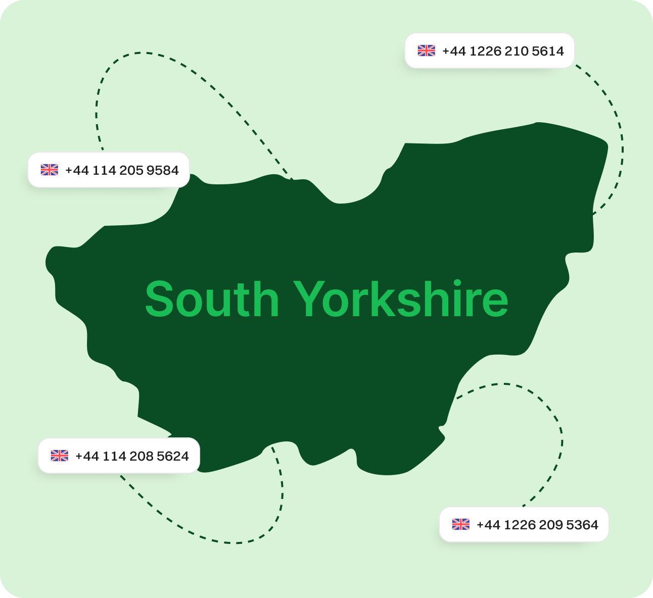 Customers are more likely to answer local calls. Increase your pickup and conversion rates across South Yorkshire.
