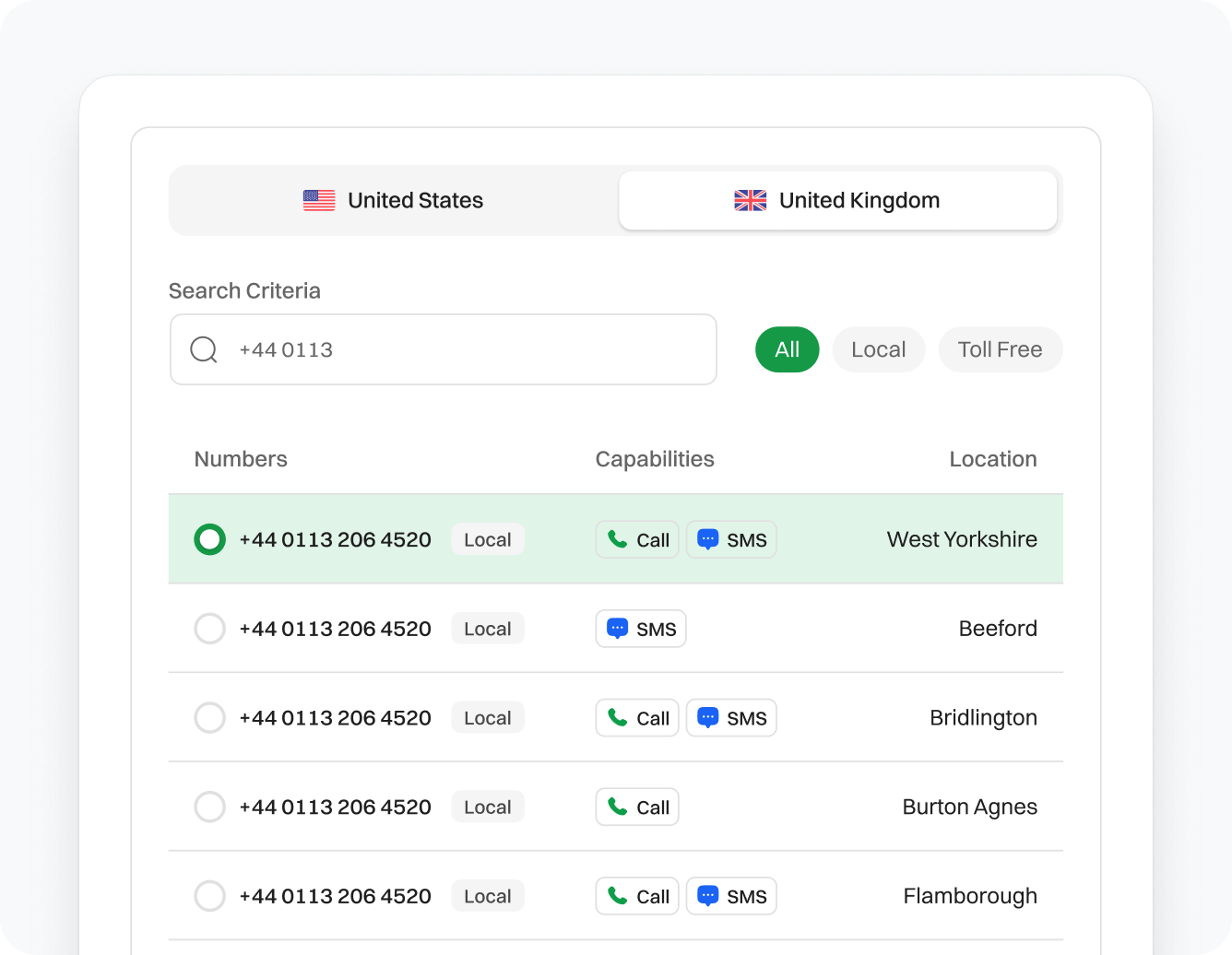 Get Your Worcestershire Virtual Phone Number Today! Establish a local presence in Worcestershire, covering towns like Worcester, Kidderminster, and Bewdley. A virtual phone number improves your accessibility, avoids long-distance charges, and connects you with UK customers, without the need for a physical office. Sign upRequest a Demo Endorsed by top industry leaders Trusted by industry experts for excellence and innovation. What Is a Worcestershire Phone Number? A Worcestershire virtual phone number is a cloud-based number powered by VoIP (Voice over Internet Protocol). It enables voice communication via the internet, rather than using traditional phone lines. This allows you to make and receive calls from any device, in any location, using a local Worcestershire area code. Even if your team operates outside the West Midlands, this number helps you establish a trusted presence in Worcestershire. It’s ideal for businesses reaching customers in surrounding counties like Herefordshire, Gloucestershire, and Warwickshire, while ensuring crystal-clear calls and improved accessibility. How Does a Worcestershire Virtual Phone Number Work? Worcestershire virtual phone numbers function over VoIP, routing calls through your internet connection. When someone dials your local number, their voice is broken into digital packets and sent through your broadband connection, then reconstructed instantly on your end. This system offers consistent call quality with minimal delay, regardless of where your business is located. You can route calls to any mobile, VoIP phone, or desktop device, making it perfect for remote teams, customer service departments, and call centres aiming to reach customers across Worcestershire’s main towns and villages. What Can You Do With a Staffordshire Phone Number? Make & Receive Calls Send & Receive Texts Separate Work & Personal Establish Local Presence Boost Marketing Efforts Make & Receive Calls Stay accessible across Worcester, Malvern, and other business hubs. Get Started Send & Receive Texts Connect with customers in Redditch, Kidderminster, and nearby towns using SMS. Get Started Separate Work & Personal Keep work and personal calls separate, great for remote workers and professionals. Get Started Establish Local Presence Build trust with local numbers—even if your business is based outside the region. Get Started Boost Marketing Efforts Increase engagement and conversions using locally familiar area codes. Get Started More Ways Dialaxy Supports Your UK Business Improved Customer Engagement Local Worcestershire numbers improve answer and SMS response rates. Nationwide UK Coverage Get virtual numbers for nearby counties like Herefordshire, Gloucestershire, and the West Midlands. Effortless Number Portability Easily transfer your existing local number to Dialaxy, with no long-term contracts. Industry-Specific Tools Support for sectors like education, logistics, healthcare, and manufacturing in Worcestershire. Brand Consistency Appear local with region-specific caller IDs across your marketing and support channels. Specific Area Codes for Worcestershire Area Code Region Covered 01299 Bewdley Why Choose Dialaxy for Your Worcestershire Virtual Phone Number? Flexible Plans Ideal for startups, growing businesses, and large teams. Choose what suits your call and messaging needs. Quick Setup Choose your preferred Worcestershire area code and activate your number in just minutes. Scalable for Growth Easily add new numbers as your business expands across other counties or into new markets. 24/7 Customer Assistance Always-on customer support, ideal for businesses operating during non-standard hours. Advanced Call Tools Includes call forwarding, call logs, voicemail-to-email, auto-attendants, and more in one interface. Affordable Pricing Keep costs low while expanding your reach into Worcestershire’s thriving towns and business parks. How to Get a Worcestershire Number with Dialaxy? Step 1 Create an Account Register on Dialaxy using your business or personal email. Step 2 Go to "Add New Number" Access your unified communications dashboard and select this option. Step 3 Choose United Kingdom > Worcestershire Pick the county and your preferred town. Step 4 Pick Your Area Code Choose from available codes like 01905, 01562. Step 5 Make Payment and Verify Finalize payment and complete verification. Step 6 Activate and Use Your number is ready to receive calls, texts, and support your operations. Grow Your Business with a Worcestershire Area Code Strategic Location Worcestershire is centrally located, providing access to Birmingham, Bristol, and the M5 corridor. It connects easily with neighbouring counties, making it ideal for logistics, distribution, and regional expansion. Industry Versatility Worcestershire supports diverse sectors—from food processing to IT and aerospace. A virtual number helps businesses connect with partners, customers, and clients in all these areas. Market Expansion Appear local in Worcester, Redditch, and Bromsgrove—even if your base is in London or overseas. Customers are more likely to trust and respond to familiar area codes. Reliable Connectivity With VoIP and strong broadband coverage in Worcestershire, you’ll stay connected across devices—whether you’re at your desk or working remotely. Business-Friendly Region Worcestershire councils actively support business growth through innovation hubs and economic programs. A local number can help you plug into the region’s growth. Startup Ready From Malvern’s tech startups to family-run retailers in Evesham, Worcestershire is great for entrepreneurs. A virtual number gets you started instantly—no office lease needed. Explore More UK Regions Somerset Cheshire Scottish Borders Kent Surrey Hampshire Devon Essex South Yorkshire View all Frequently Asked Questions What is a Worcestershire virtual phone number?It’s a VoIP-based phone number tied to Worcestershire area codes like 01905 (Worcester)