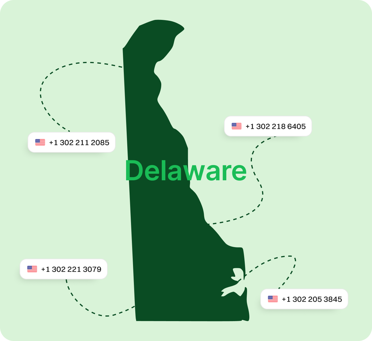 Get a Delaware Virtual Phone Number Today! Establish a local presence and enhance customer trust with a Delaware VoIP number. Reduce long-distance costs, manage business communications seamlessly, and stay connected from anywhere without requiring a physical office. Sign upRequest a Demo Endorsed by top industry leaders Trusted by industry experts for excellence and innovation. What is a Delaware phone number? A Delaware phone number is a digital number that operates through the internet, typically using the area code 302. It functions similarly to a traditional phone number but without the reliance on physical phone lines, offering greater flexibility and convenience. With a Delaware phone number, users can make and receive calls from anywhere, using the internet to connect. Unlike traditional numbers, Delaware phone numbers aren’t tied to a specific location or device, giving businesses and individuals the ability to establish a local presence in Delaware no matter where they are located globally. Whether for personal or business use, these numbers are easily accessible through various virtual phone service providers, eliminating the need for costly hardware or infrastructure. An example of a Delaware phone number would be +1 302 123-4567. How does a Delaware virtual phone number work? A Delaware VoIP number operates using cloud-based technology, routing calls over the internet rather than traditional phone networks. When someone calls your Delaware number, the call is transformed into digital data packets, sent through the internet, and delivered to the recipient. The data is then converted back into voice signals for real-time communication. This advanced technology enables businesses to streamline call management and maintain professional customer interactions. Delaware VoIP numbers can be accessed via mobile apps, VoIP phones, or desktop applications, eliminating the need for traditional phone systems. How to make the most of Delaware phone numbers? Make & Receive Calls Send & Receive Texts Keep Work & Personal Separate Establish Local Presence Boost Marketing Efforts Make & Receive Calls Use your Delaware phone number for business calls while keeping your personal number private. Dialaxy lets you show your Delaware number on caller ID, ensuring professionalism. Get Started Send & Receive Texts Leverage text messaging to connect with customers. Use your Delaware number to send updates, promotions, and reminders, offering a convenient way to stay in touch. Get Started Keep Work & Personal Separate Dialaxy helps you maintain privacy by separating business and personal communications. Manage calls and messages for work without interruptions to your personal life. Get Started Establish Local Presence Build trust with a local Delaware number, even if your business operates remotely. A recognizable area code helps you connect with customers more effectively. Get Started Boost Marketing Efforts Improve your campaigns by using your Delaware number for outreach. Localized numbers increase customer engagement and response rates for promotions and offers. Get Started Specific area codes for Delaware Area Code Area Served 302 Entire state of Delaware Why choose Dialaxy for a Delaware virtual phone number? Customizable Plans for Flexibility Dialaxy offers a variety of pricing plans tailored to your needs, allowing you to choose features and services that best suit your personal or business requirements without overpaying. Quick Setup with Zero Hassle Setting up a virtual phone number with Dialaxy is simple and requires no additional hardware. Enjoy a seamless setup process and start making calls within minutes. Scalable Solutions for Growth As your business expands, Dialaxy grows with you. You can easily scale your services by adding multiple Delaware numbers, ensuring smooth communication with your increasing customer base. Round-the-Clock Support Dialaxy provides 24/7 customer support to resolve any issues or answer questions promptly, keeping your business communication efficient and stress-free. Enhanced Call Management Features Leverage advanced features like call forwarding, voicemail-to-email, and analytics to manage calls more effectively and deliver exceptional customer service. Cost-Effective Pricing With Dialaxy, you get premium services at affordable prices. Whether you're a small business or a large enterprise, you can enjoy professional telephony solutions without exceeding your budget. How to buy a Delaware number for your business? Step 1 Create an Account Sign up on Dialaxy by visiting their website and completing the simple registration process. Step 2 Navigate to the "Add New Number" Section Go to your account dashboard, find the "Add New Number" option, and select it. Step 3 Select USA and Search for Your Preferred Area Codes From the country list, choose "USA," then search area code according to your phone number need. Step 4 Pick Your Delaware Island Number Browse through the list of available Delaware numbers, select the one you want, and add it to your cart. Step 5 Make Payment and Verify Details Complete the payment process and submit any required documentation to verify your account. Step 6 Activate and Start Using Your Number Once activated, your Delaware virtual phone number is ready to use to make and receive calls. Explore More States Alabama Arkansas Florida Georgia Kentucky Louisiana Maryland Mississippi North Carolina Oklahoma South Carolina Tennessee Texas Virginia West Virginia Washington DC View all Frequently Asked Questions What is a Delaware virtual phone number?A Delaware virtual phone number is a cloud-based number with a Delaware area code that allows users to make and receive calls over the Internet instead of traditional phone lines. Can I choose my preferred area code for a Delaware number?Yes, you can select an available Delaware area code (302) when purchasing through Dialaxy. Do I need to be in Delaware to use a Delaware virtual phone number?No,