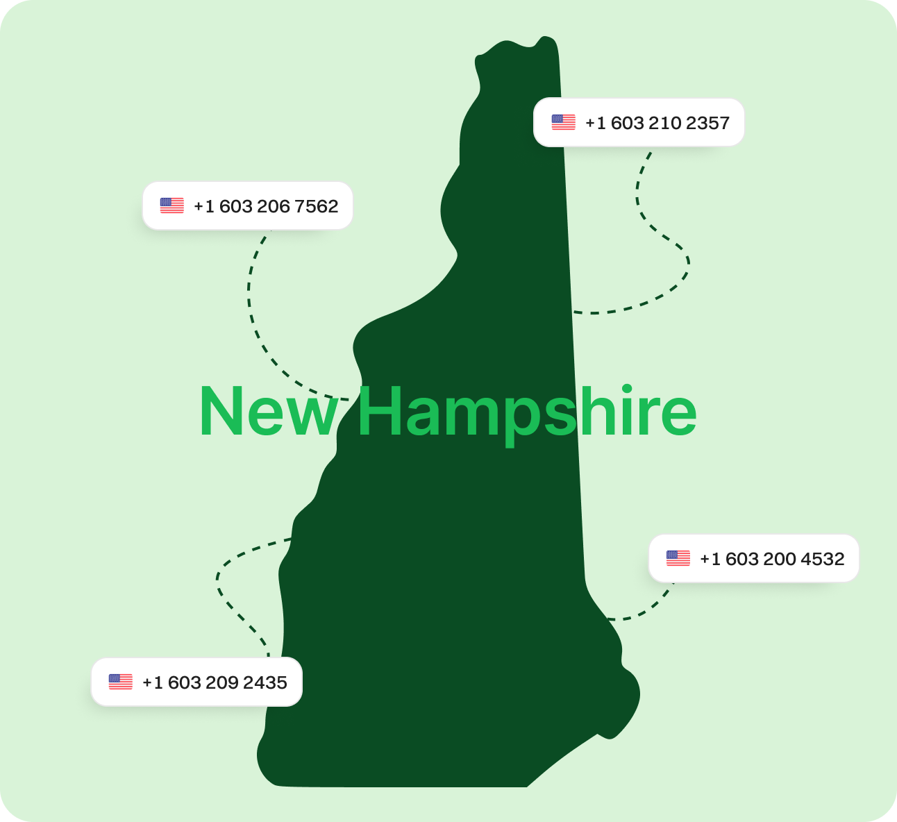 Improve your campaigns by using your New Hampshire number for outreach. Localized numbers increase customer engagement and response rates for promotions and offers.