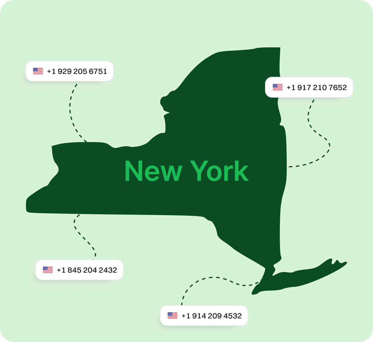 Improve your campaigns by using your New York number for outreach. Localized numbers increase customer engagement and response rates for promotions and offers.